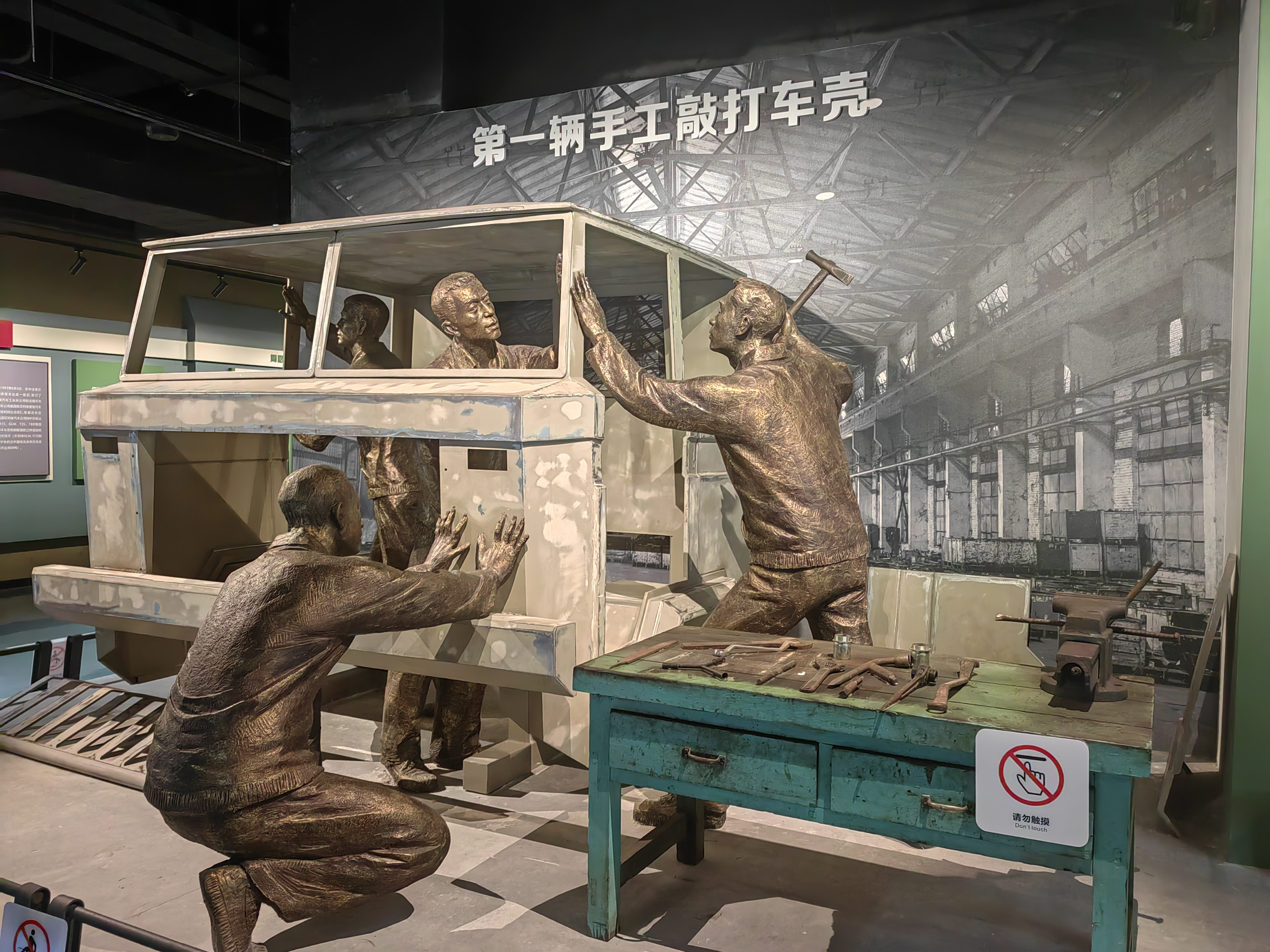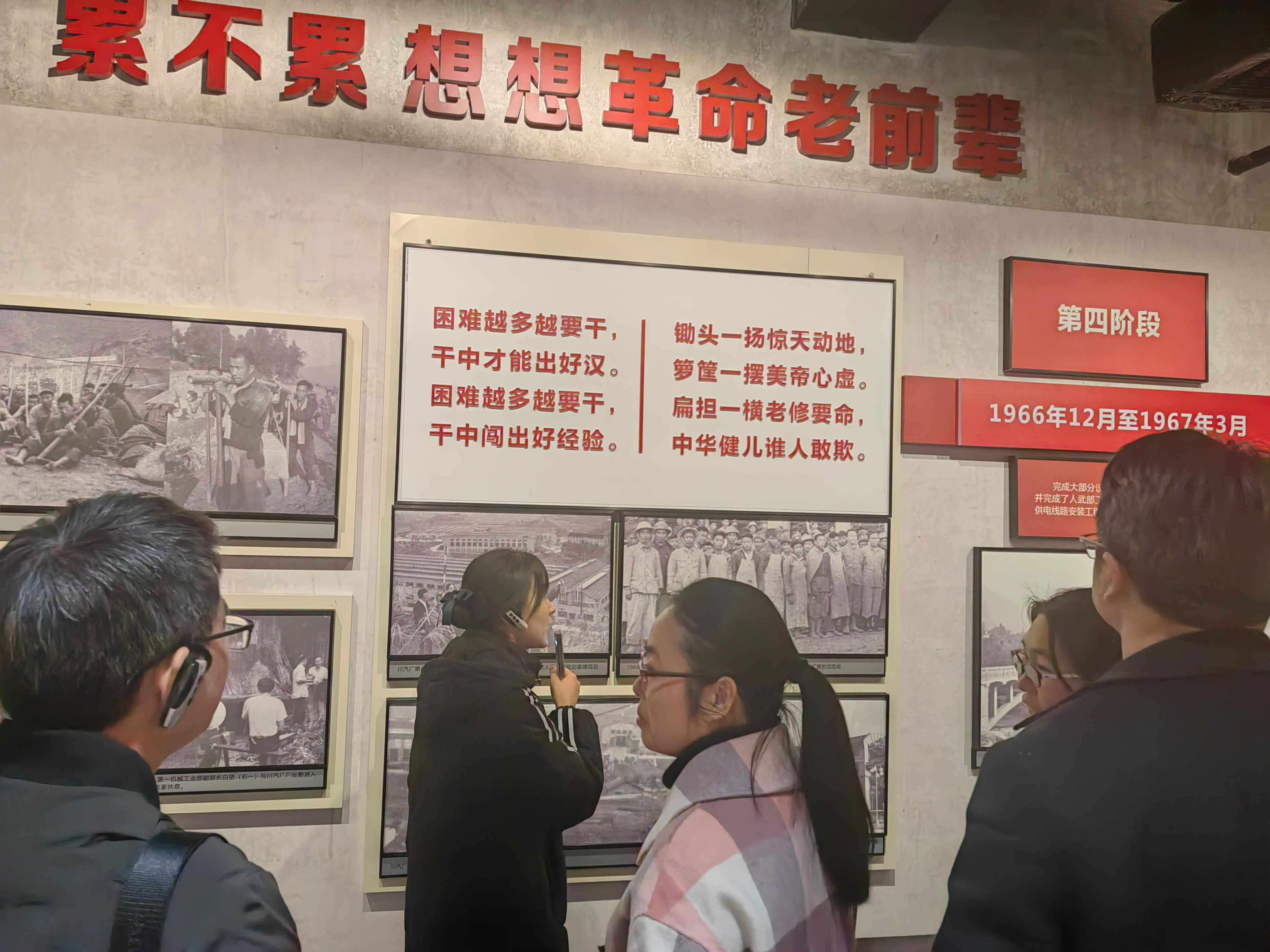 在重庆红岩重型汽车博物馆馆长叶权的安排下,讲解员代和欢带领j9九游会教师们参观了博物馆的五个展区,一是序厅及时光之门展区,展示五湖四海的人来到大足参加“三线建设”;二是重大决策展区,讲述上世纪六十年代,中央“三个决策”在大足的历史;三是流金岁月展区,讲述“三线建设”者艰苦卓绝创业、家国情怀的故事;四是筑梦重车展区,展示重汽人如何砥砺奋进、振兴民族工业,以及其中激动人心的成就和故事;五是盛世华章展区,展示双城双桥、重汽重镇,携手走向辉煌。通过参观和学习,大家了解了红岩汽车的发展历程,零距离感受重型汽车生产建设工艺,亲身感受到弘扬和传承“三线精神”和“重汽精神”在新时代的价值和意义。
