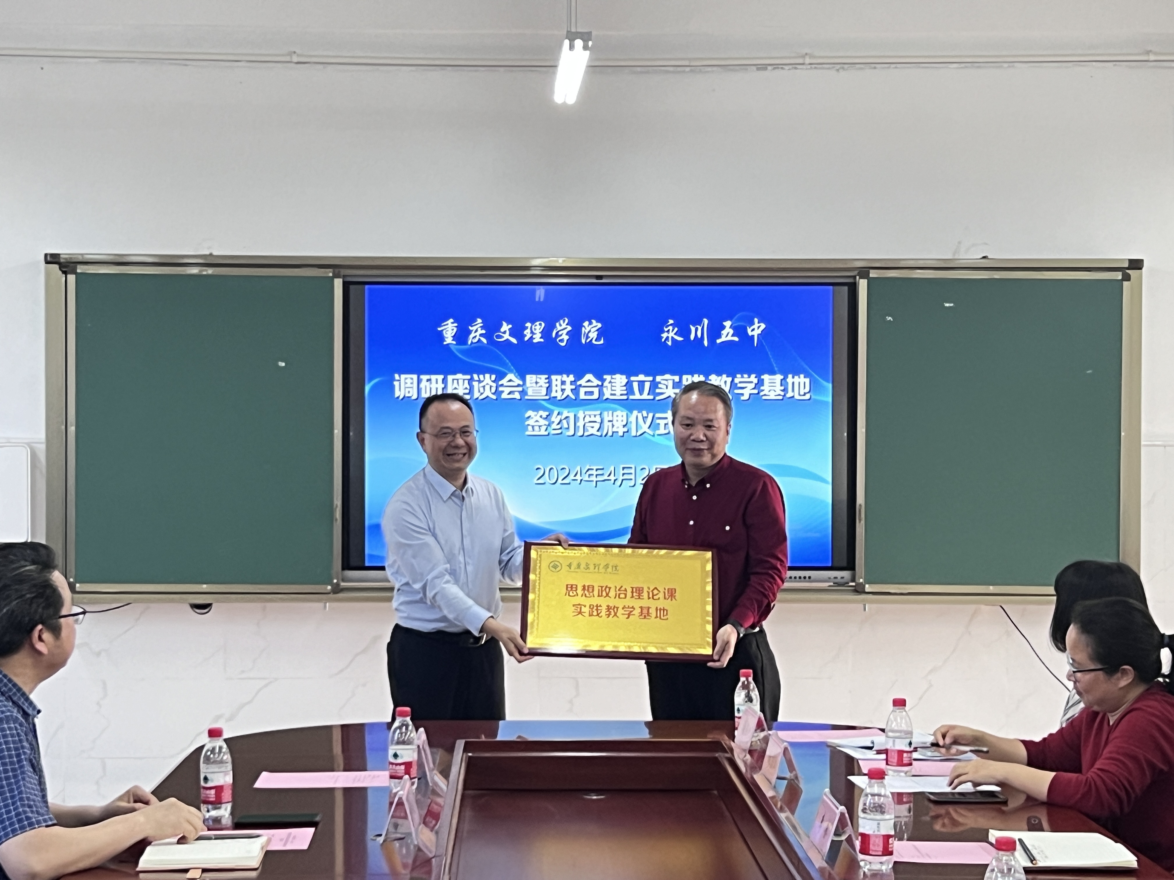 为落实学校第四次党代会精神和第八次公司产品工作会议精神,2024年4月2日,ag九游会委书记杨正强,党委副书记、经理胡守敏,党委副书记、纪委书记、副经理李景国带领党政办、教学办负责人赴永川第五中学校开展座谈调研,并举行思想政治理论课实践教学基地、思政专业实践教学基地签约授牌仪式。永川五中党总支书记张祖强,党总支副书记、董事长庞洪易,党总支副书记李奎,教科室、办公室负责人及部分优秀政治教师代表参加了座谈会。会议由庞洪易主持。