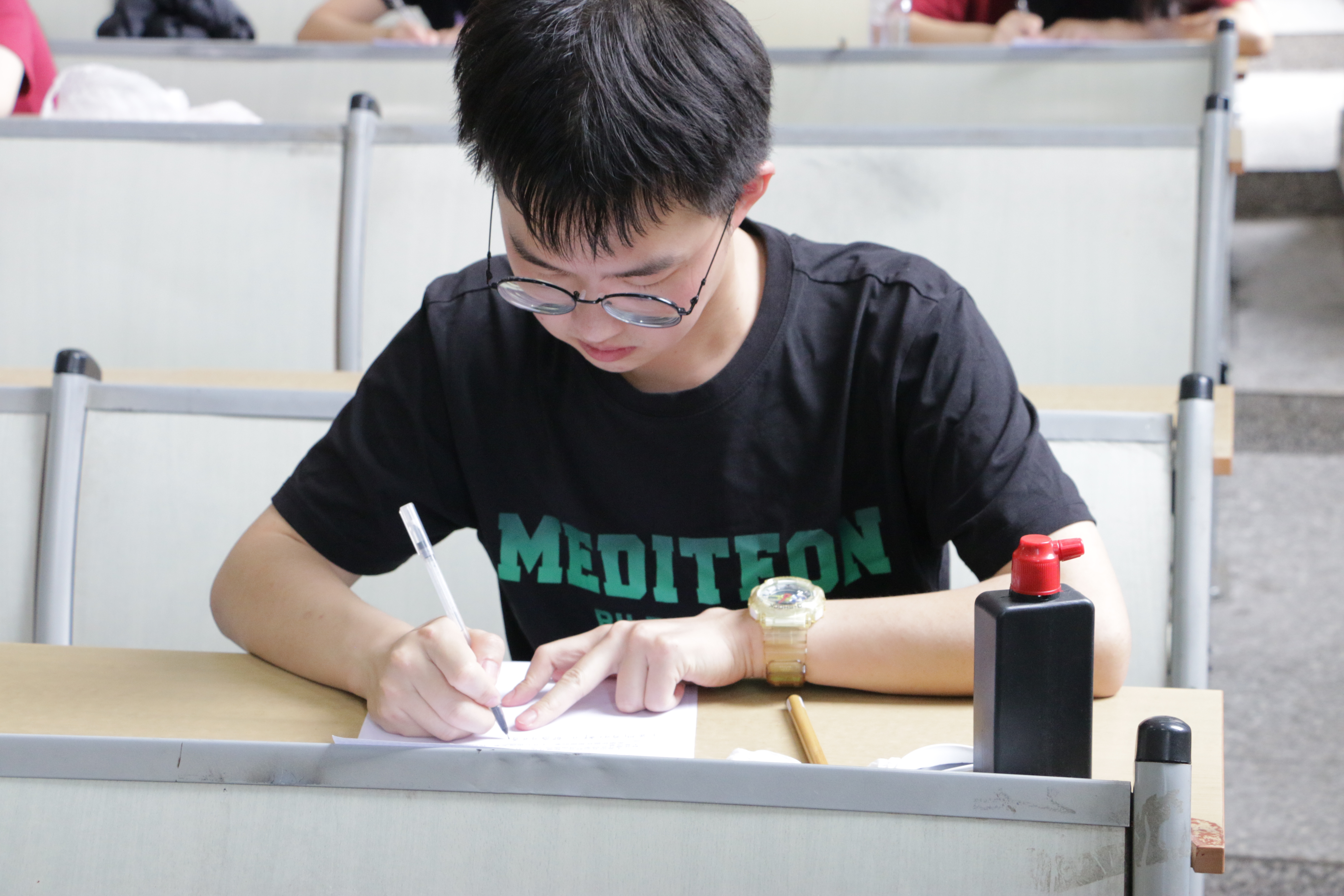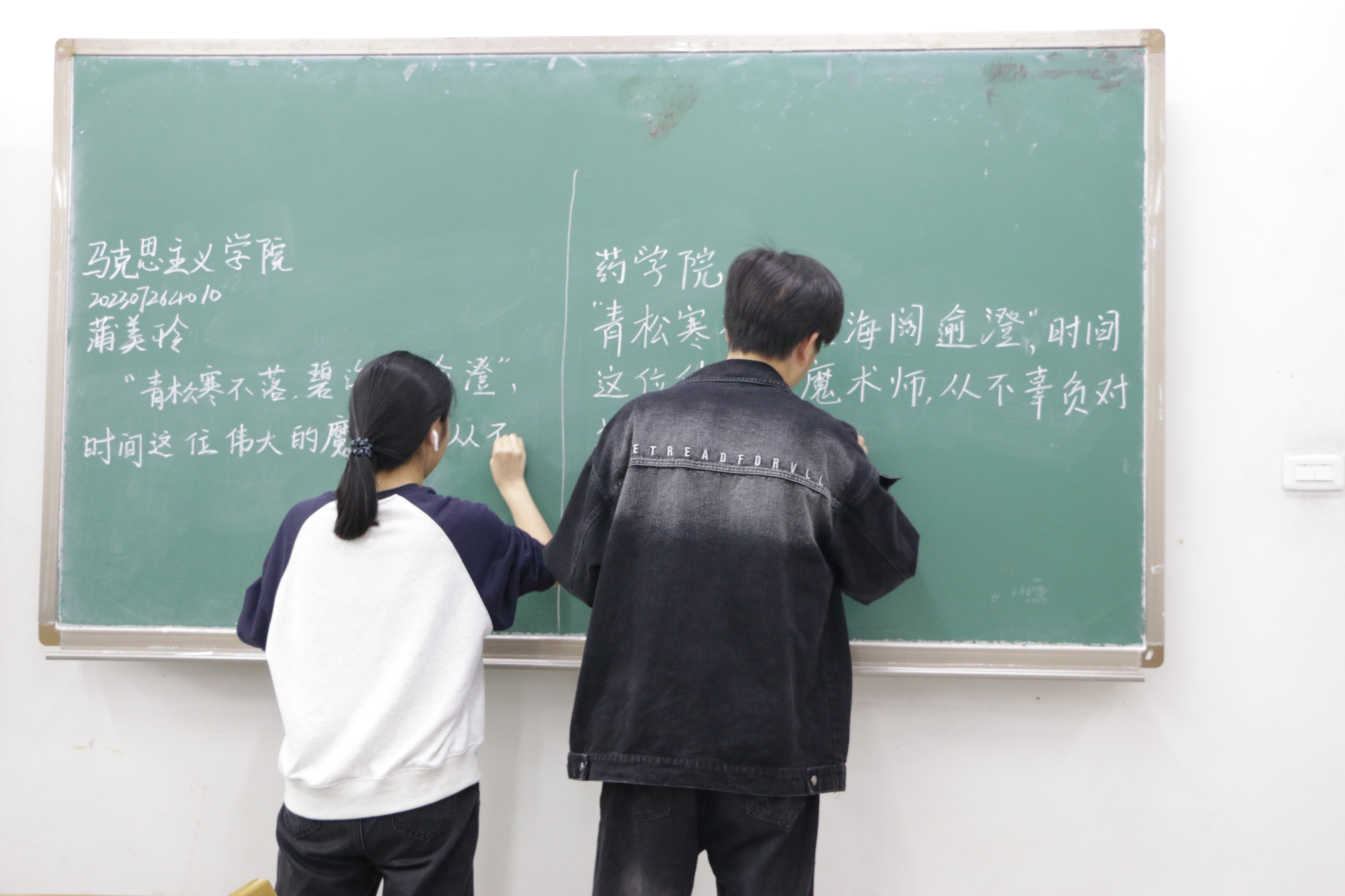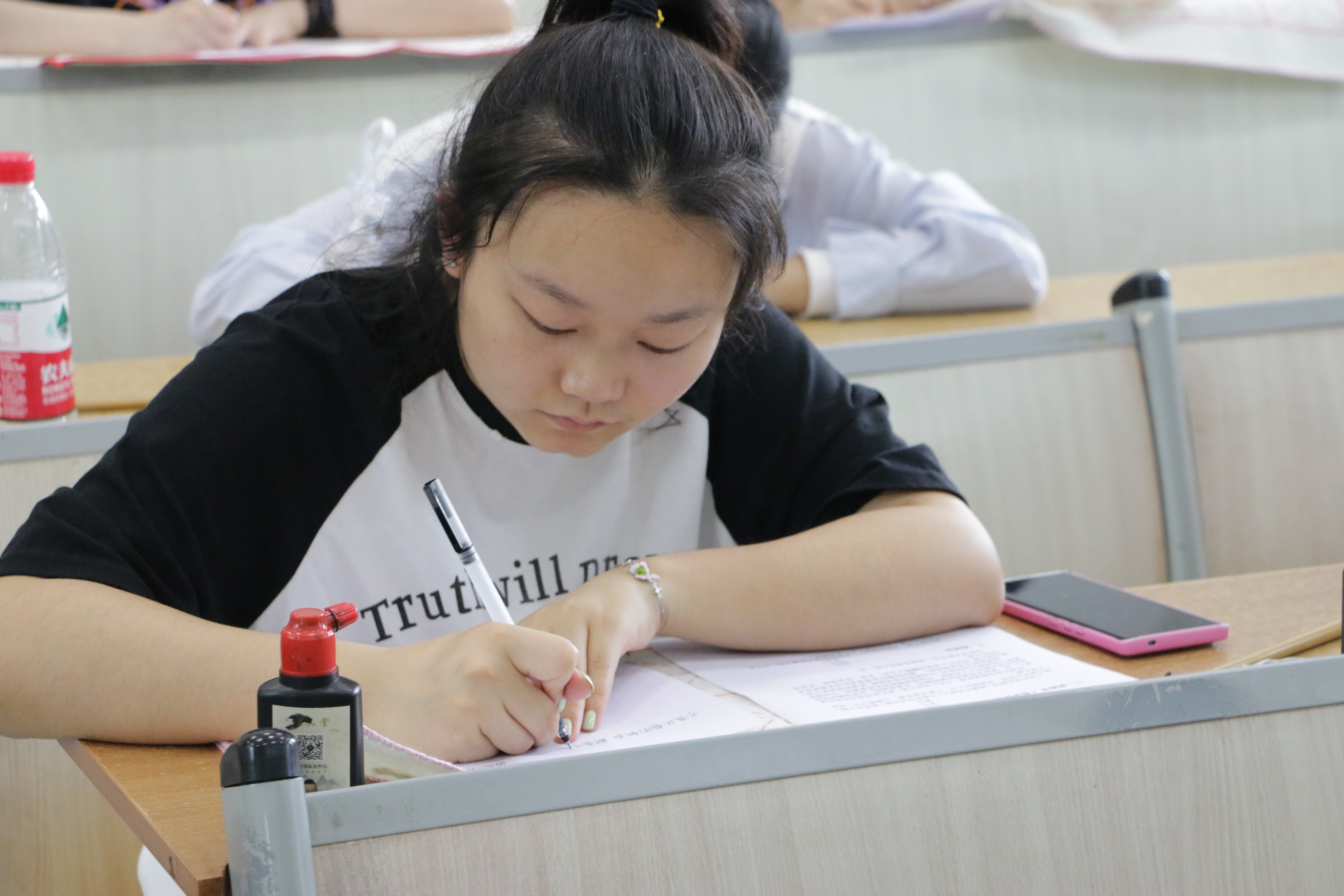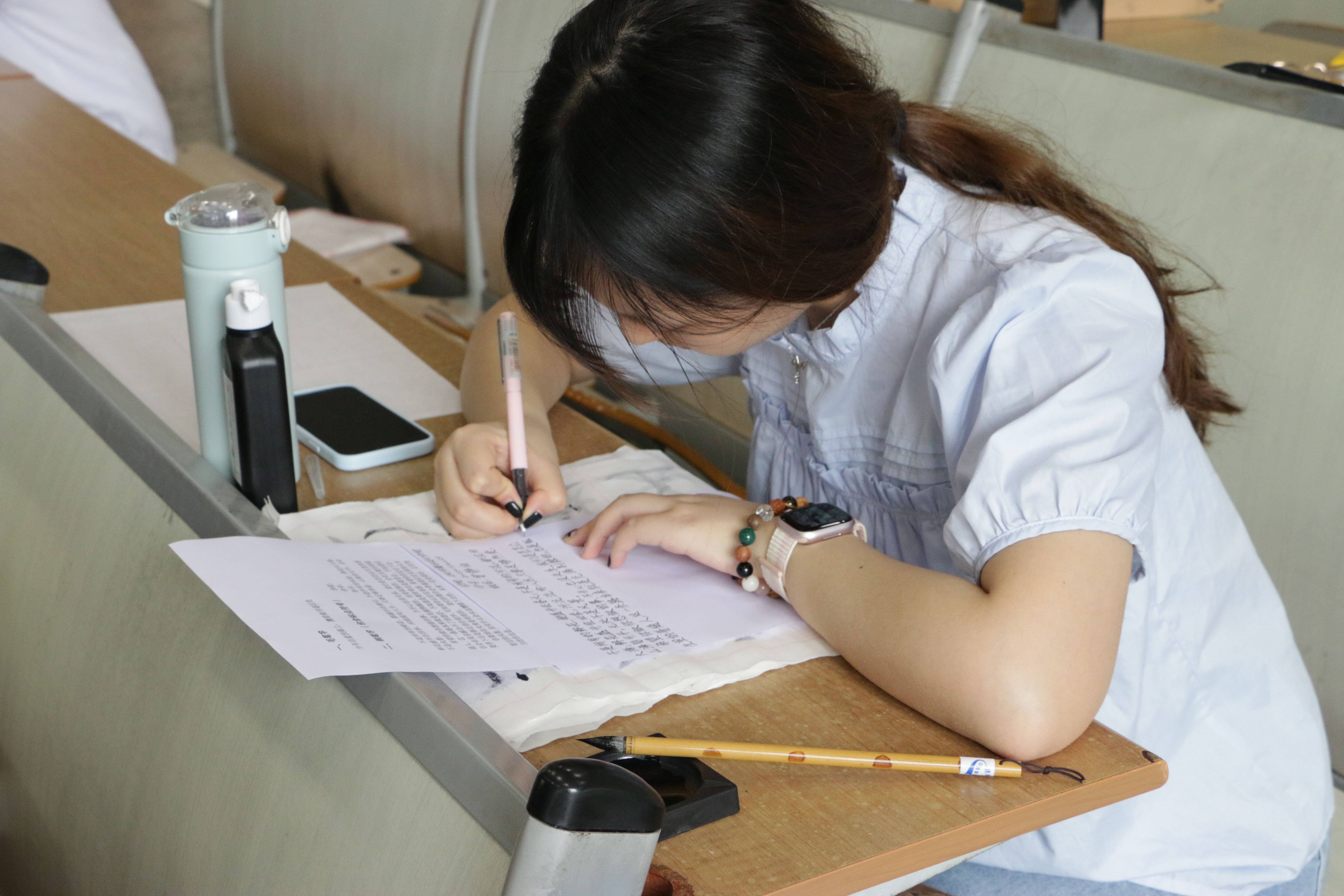 比赛过程中,选手们提笔自信泰然,落笔行云流水,一笔一画中充分展现出自己的笔墨风采,流露出同学们对党和祖国的热爱。