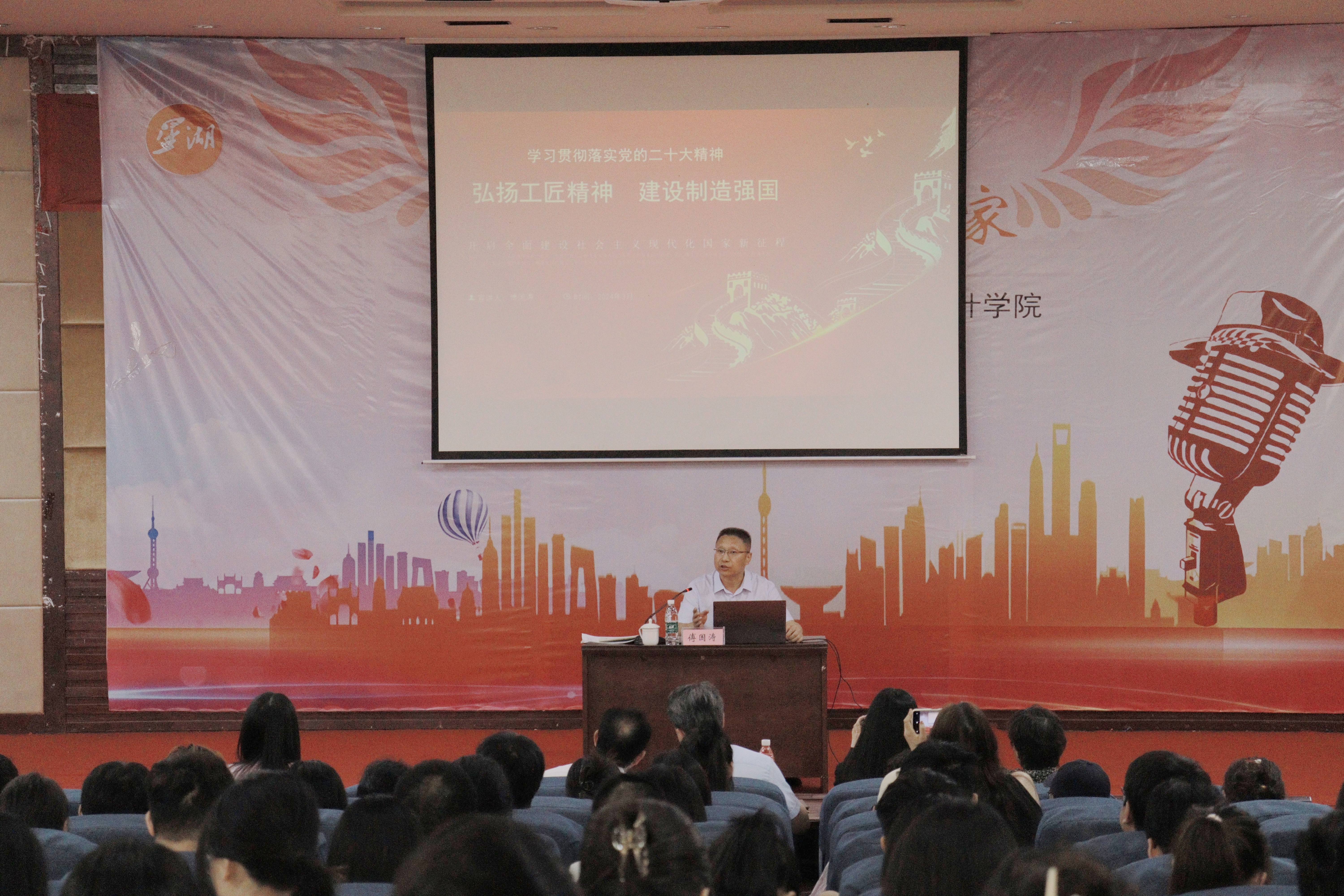 随后,傅国涛结合自己学习、工作、生活的亲身经历,尤其是自己作为全国人大代表、全国技术能手的心路历程,为师生讲授了题为《弘扬工匠精神 建设制造强国》的思政课。傅国涛从工匠精神的内涵、工匠精神的核心、工匠精神的价值、工匠精神的培育、工匠精神的践行等几个方面,为在场师生作了生动讲授,提出中国要从制造大国迈向制造强国,就需要在全社会大力弘扬工匠精神。