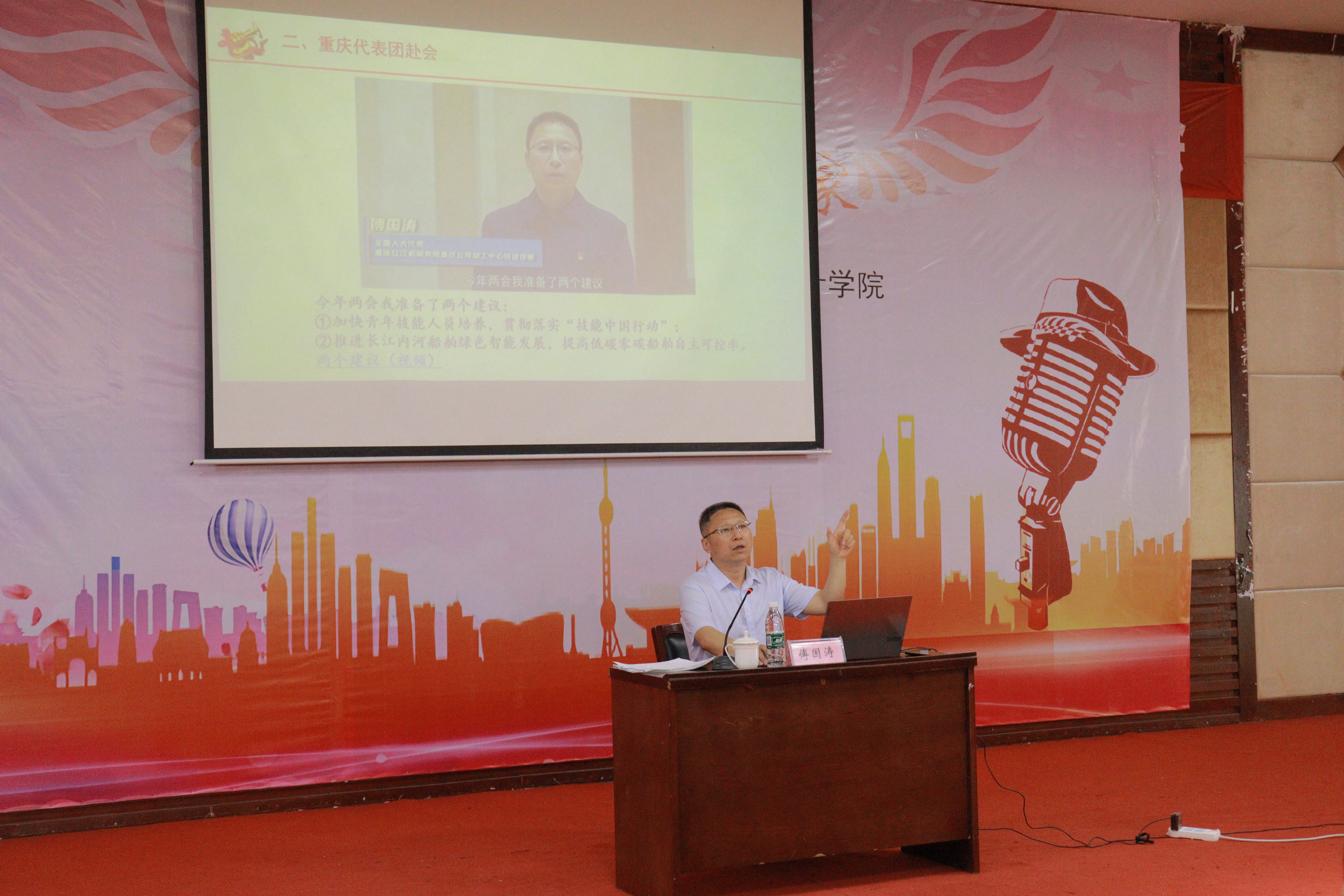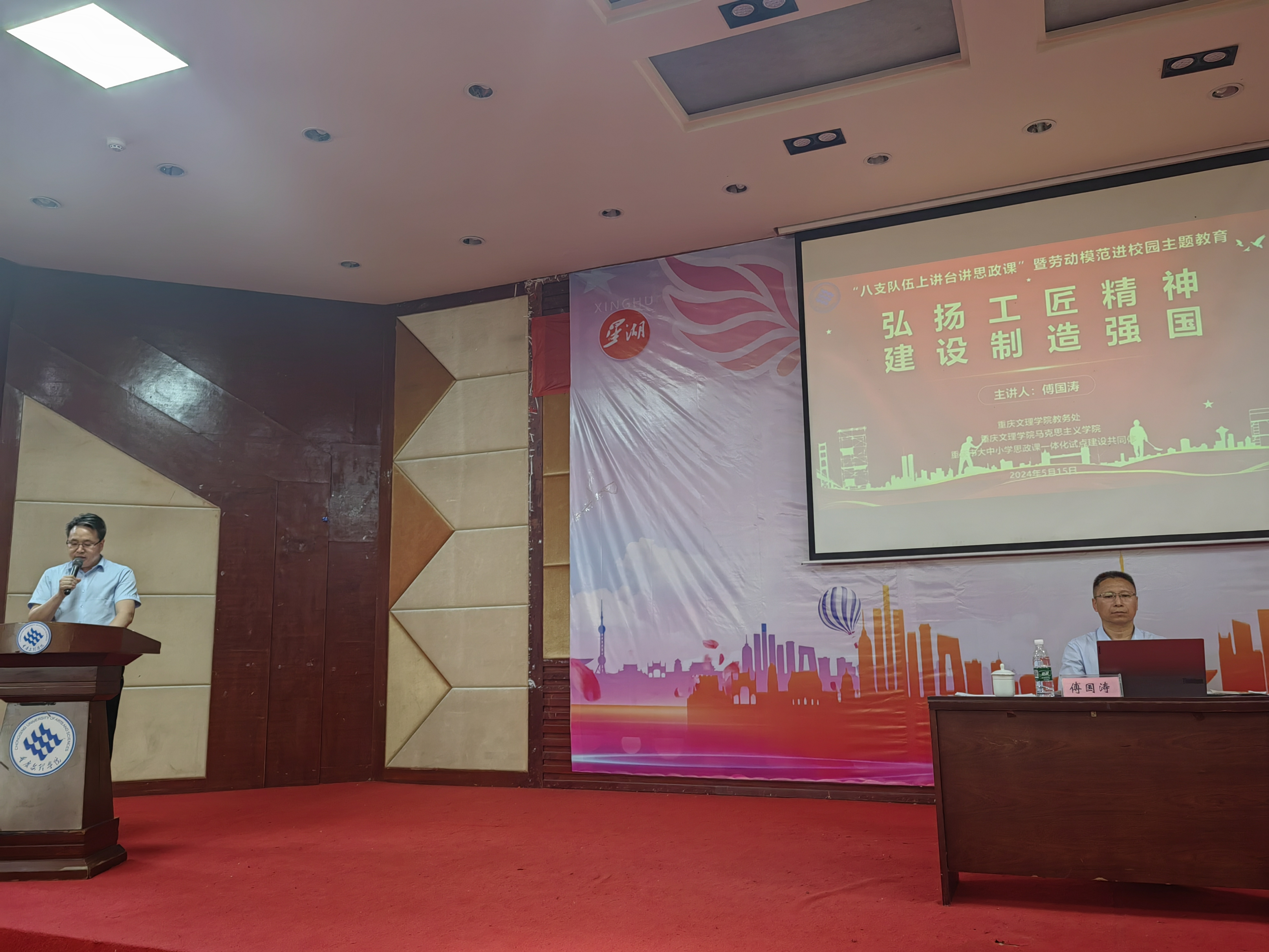 为深入贯彻落实习近平总书记对学校思政课建设作出的重要指示精神,5月15日下午,学校教务处、j9九游会、重庆市大中小学思政课一体化试点建设共同体在博文馆文理大讲堂联合举办“八支队伍上讲台讲思政课”暨劳动模范进校园主题教育活动。活动由j9九游会经理胡守敏主持,全校师范专业师生代表和重庆市大中小学思政课一体化试点建设共同体相关成员单位人员参加了本次活动。