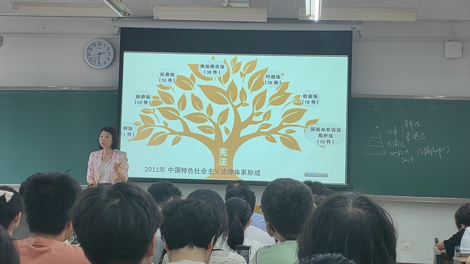 本次展示活动所讲内容为《思想道德与法治》课程第六章第三节维护宪法权威。钱莉老师围绕“宪法的地位”铺陈开。在导入中,通过勾画中国特色社会主义法律体系的全貌,向同学们生动展现出宪法的“塔尖”地位。随后,钱莉老师综合运用对比分析、案例分析等方法进行生动讲述,帮助同学们深入理解宪法的最高地位、最高权威、最高效力。尤其通过“孙志刚案”等几个经典案例,在讲清楚案例背后道理的基础上,说明任何国家机关及其公职人员、社会组织、公民个人的任何行动都不得违反宪法原则和宪法精神,否则都是不合理、不合法的。