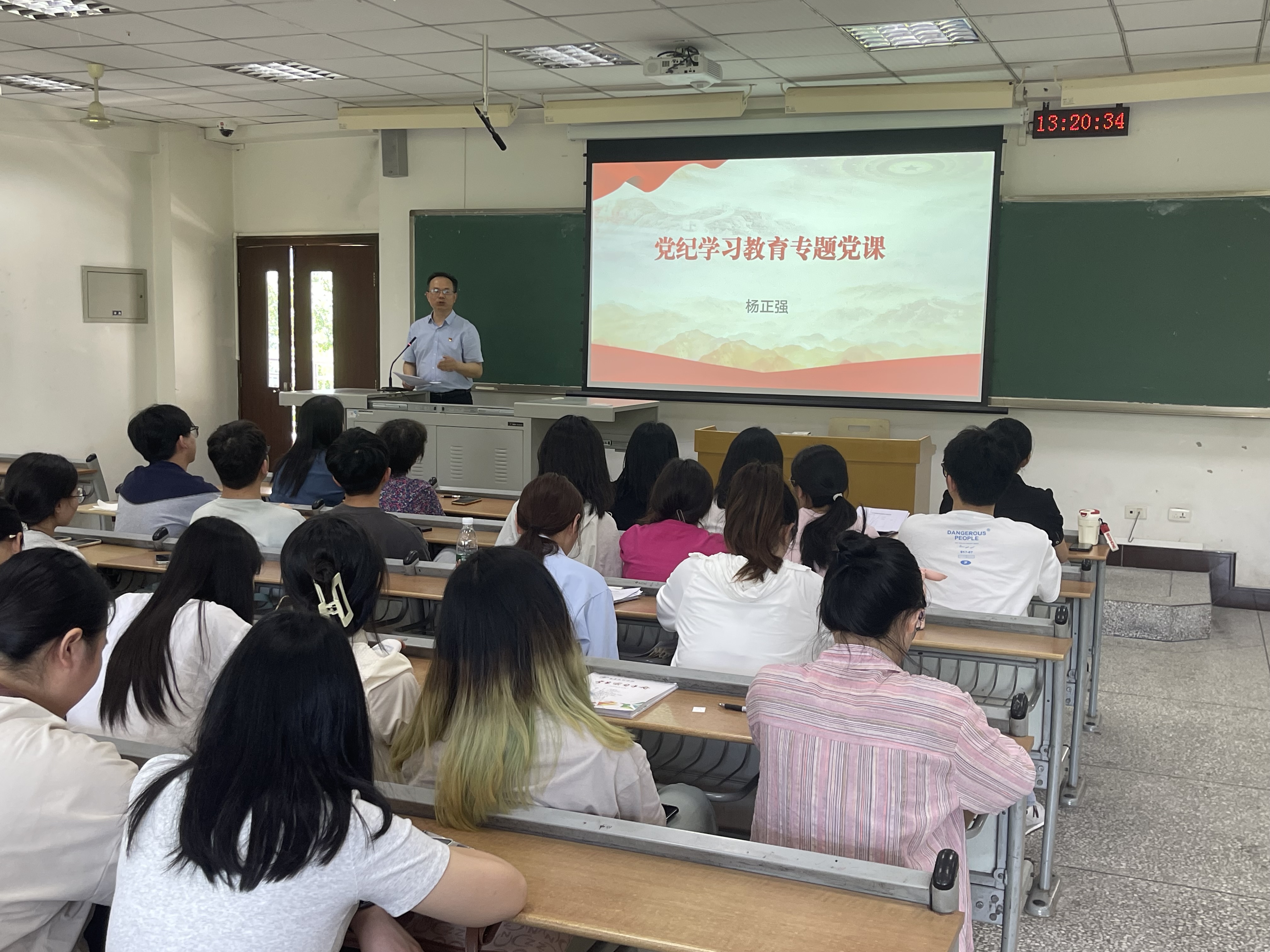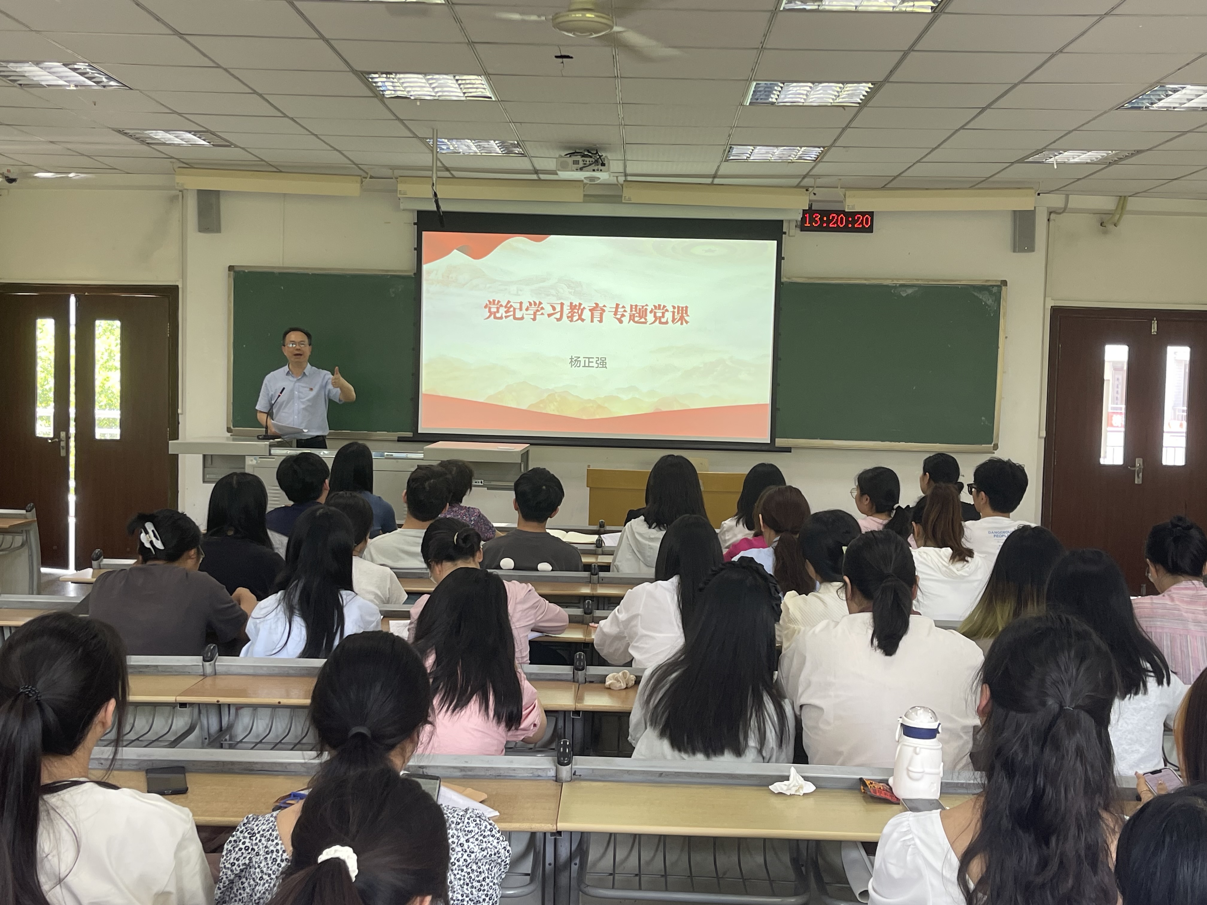 5月22日,j9九游会党委书记杨正强在知津楼D302讲授党纪学习教育专题党课。j9九游会员工党支部全体党员参加学习。