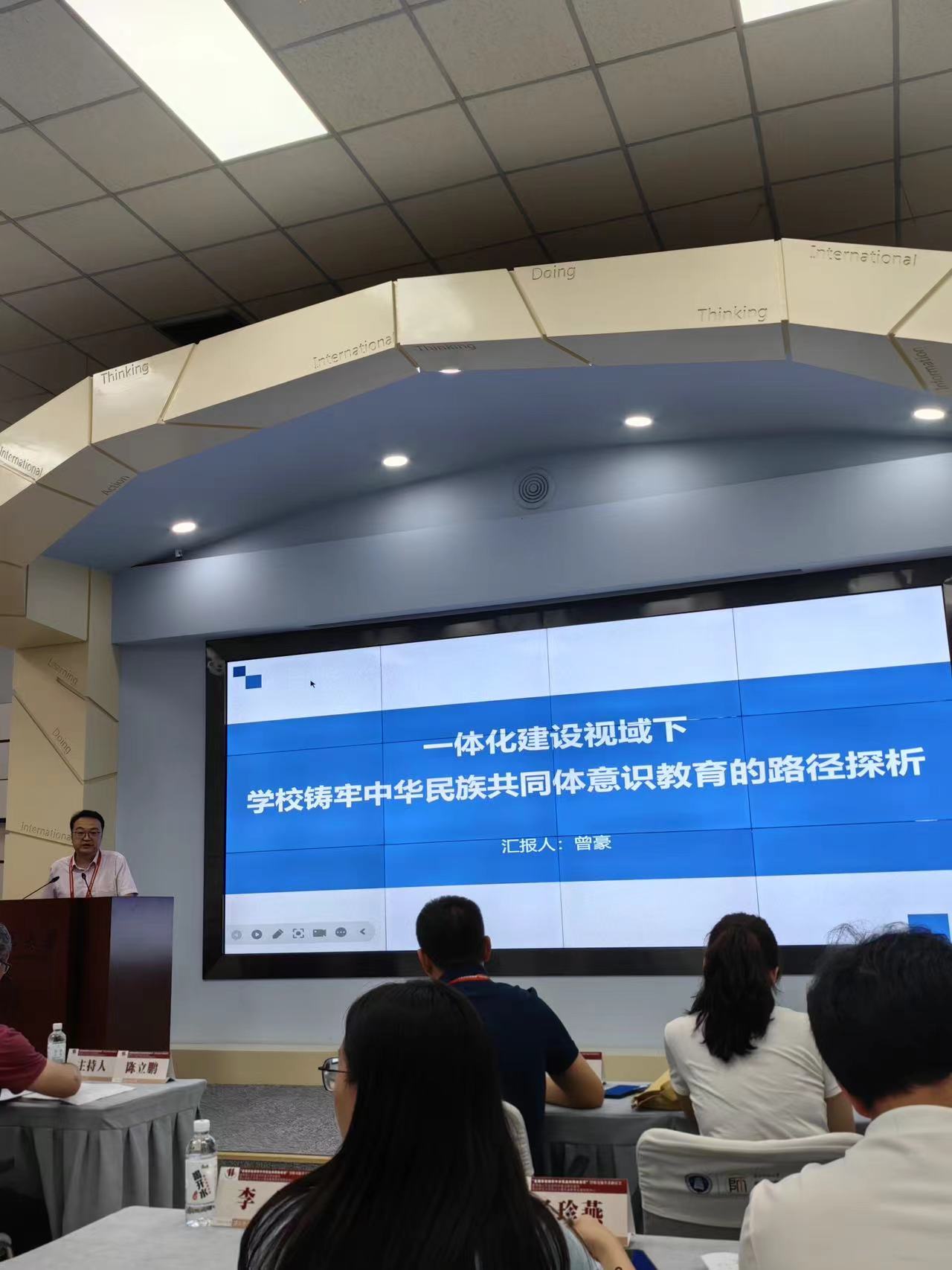 研讨会分别举办了两组中小学铸牢中华民族共同体意识经验交流分论坛和一组铸牢中华民族共同体意识理论研讨分论坛。公司曾豪副教授受邀在理论研讨分论坛作首场发言,他以《一体化建设视域下学校铸牢中华民族共同体意识教育的路径探析》为题,从重要意义、现实困境和实践路径三个维度对一体化建设视域下学校铸牢中华民族共同体意识教育进行了剖析,并就相关问题与来自中国人民大学、西南交通大学、宁夏大学、青海大学、中国非物质文化遗产研究院等高校、科研院所的专家学者进行了深入交流。
