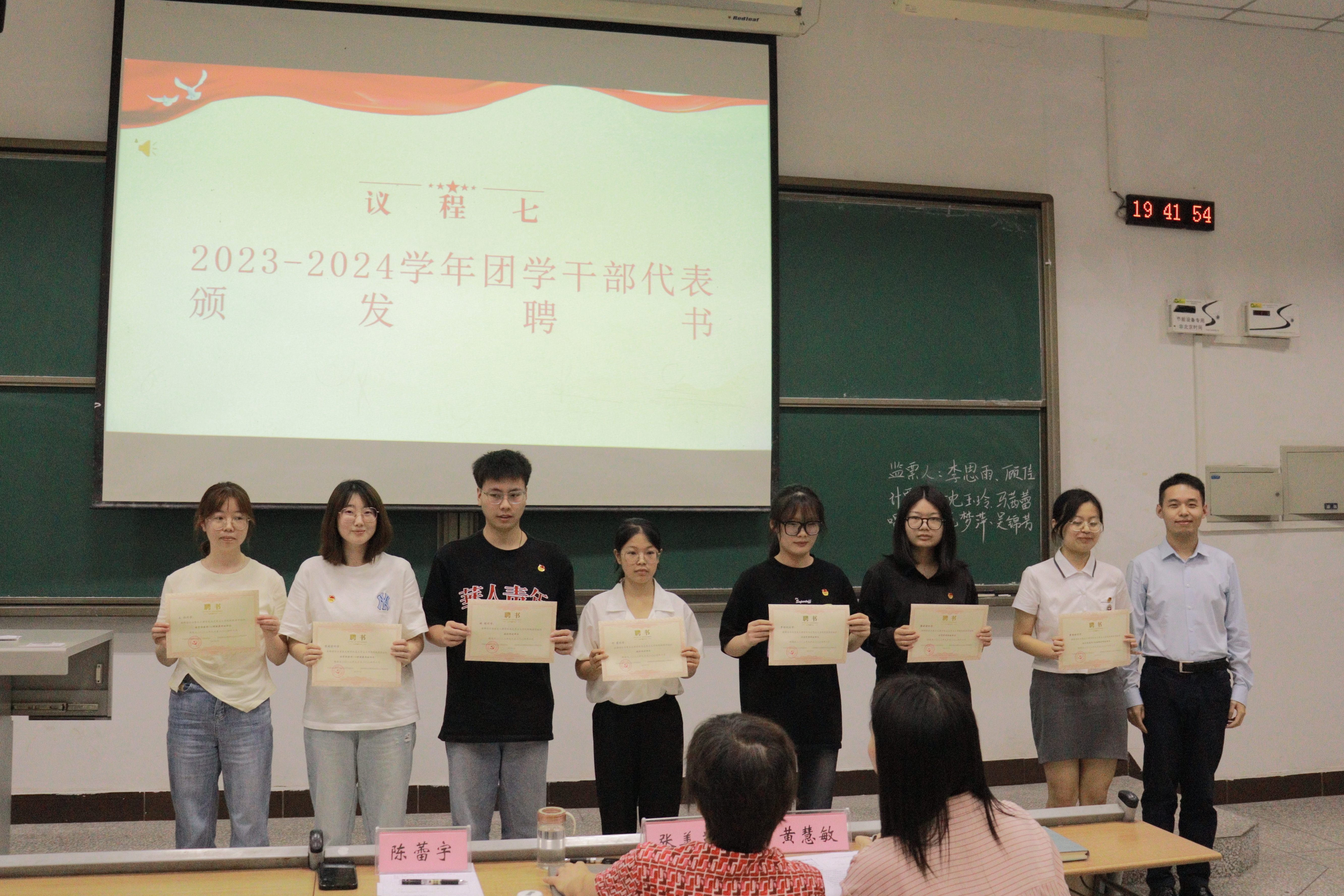 公司员工会执行主席顾佳代表上一届员工会作工作报告。选举王丹、邓礼旭为j9九游会团学组织新一届员工会执行主席,邱迪、谭丹、郑晓丽、韩文俊为新一届团委员工副书记。黄慧敏、陈蕾宇为2023-2024学年团学干部颁发聘书。韩文俊代表新一届团学组织作表态发言。