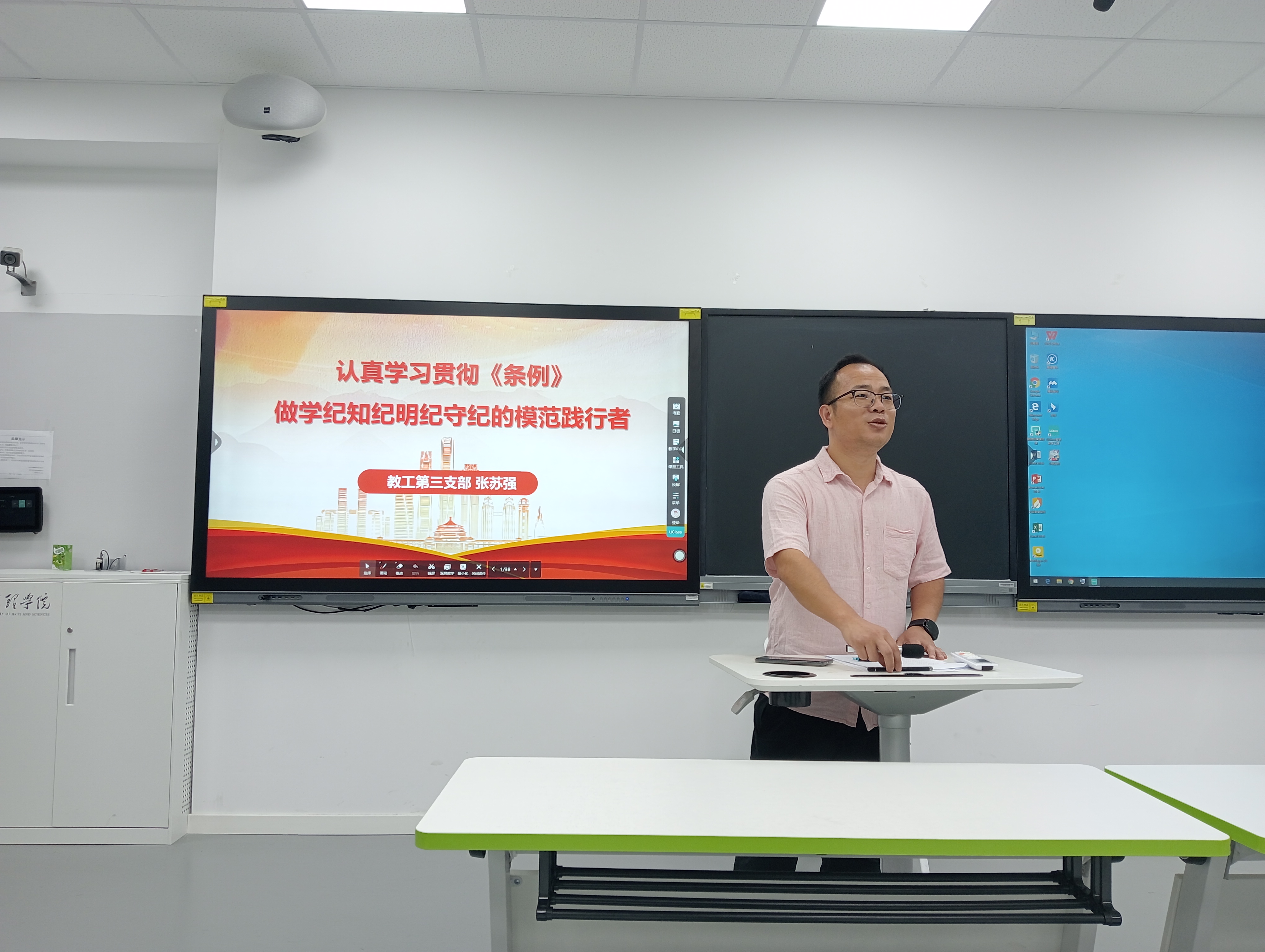 在教职工政治理论学习阶段,委副书记、经理胡守敏领学了习近平总书记关于党的建设的重要思想。杨正强领学了习近平总书记主持二十届中共中央政治局第十四次集体学习时发表的重要讲话精神。支部书记张苏强领学了学习习近平总书记给中国科学院院士、清华大学教授姚期智的回信精神。钱莉、张苏强、于大海、陈丽、周道华、王蕊等教师分别结合自己工作和学习体会作交流发言。