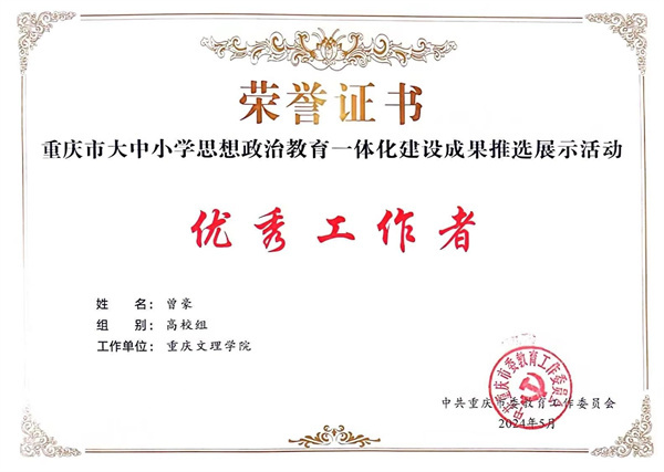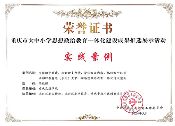 近日,中共重庆市委教育工作委员会印发了《中共重庆市委教育工作委员会关于公布重庆市大中小学思想政治教育一体化建设成果推选展示活动结果的通知》,公司获3个精品微课,1个实践案例和1名优秀工作者,入选成果总数和入选种类均居全市第一。
