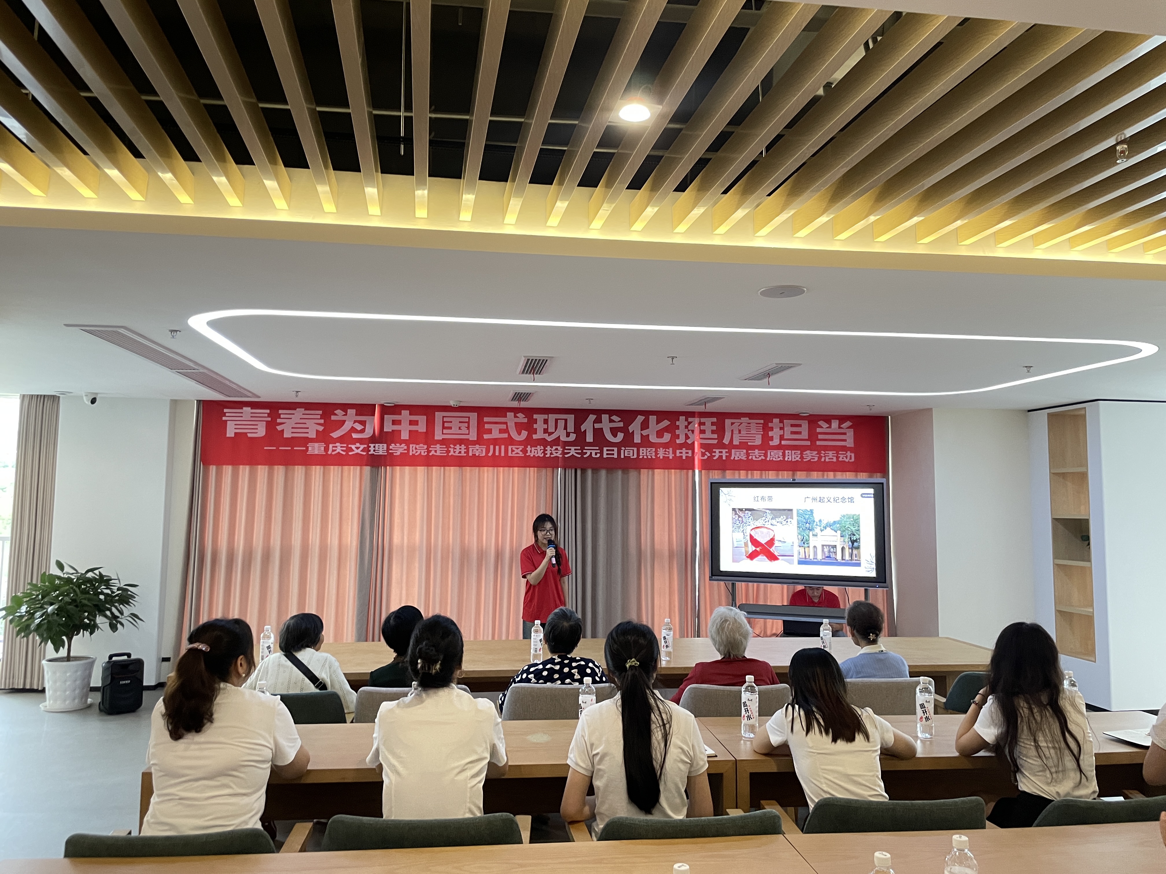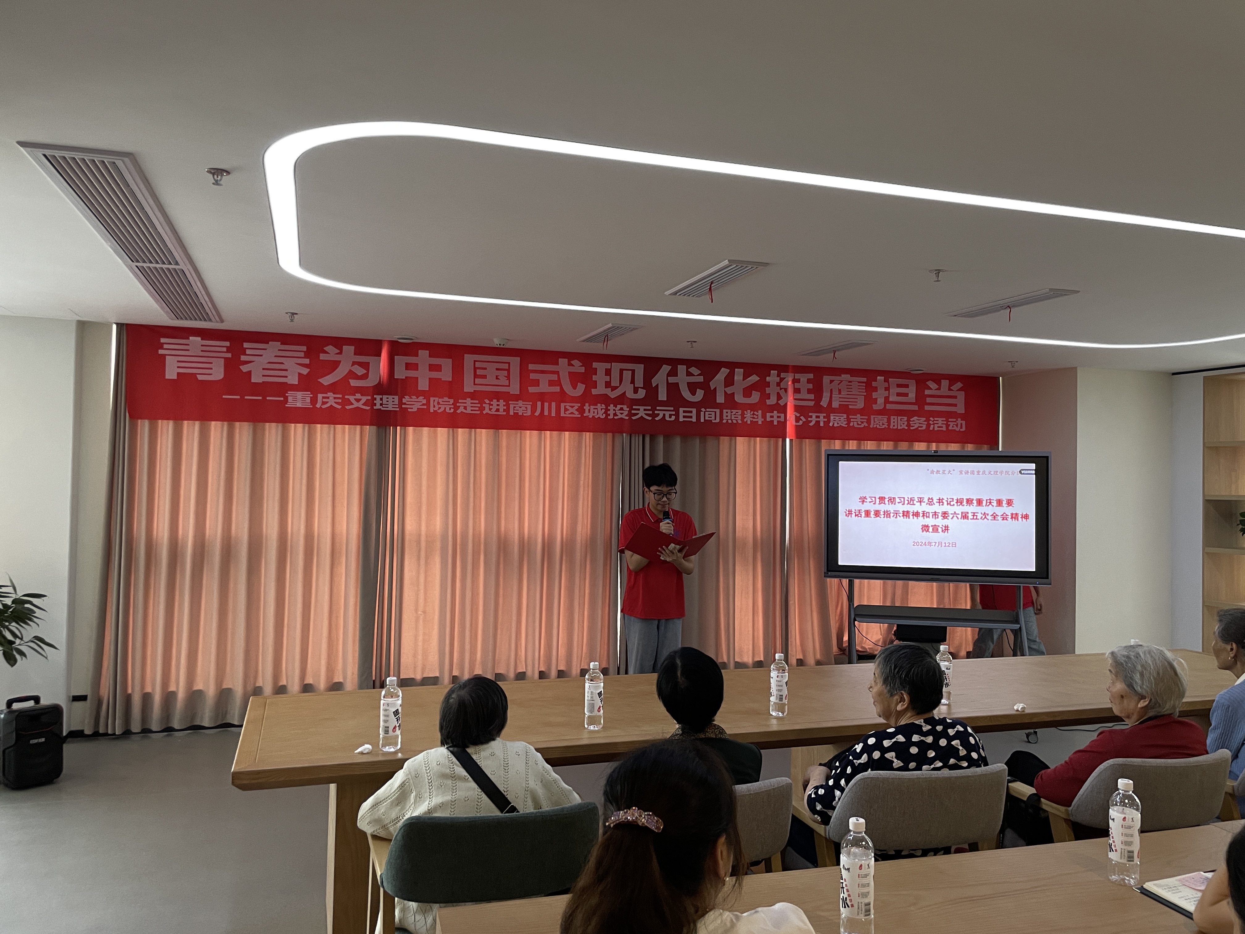为深学笃行习近平新时代中国特色社会主义思想,深入学习贯彻习近平总书记视察重庆重要讲话重要指示精神和市委六届五次全会精神,7月11日-13日,j9九游会“习近平新时代中国特色社会主义思想”宣传团一行10人走进南川区城投天元日间照料中心开展志愿服务活动。