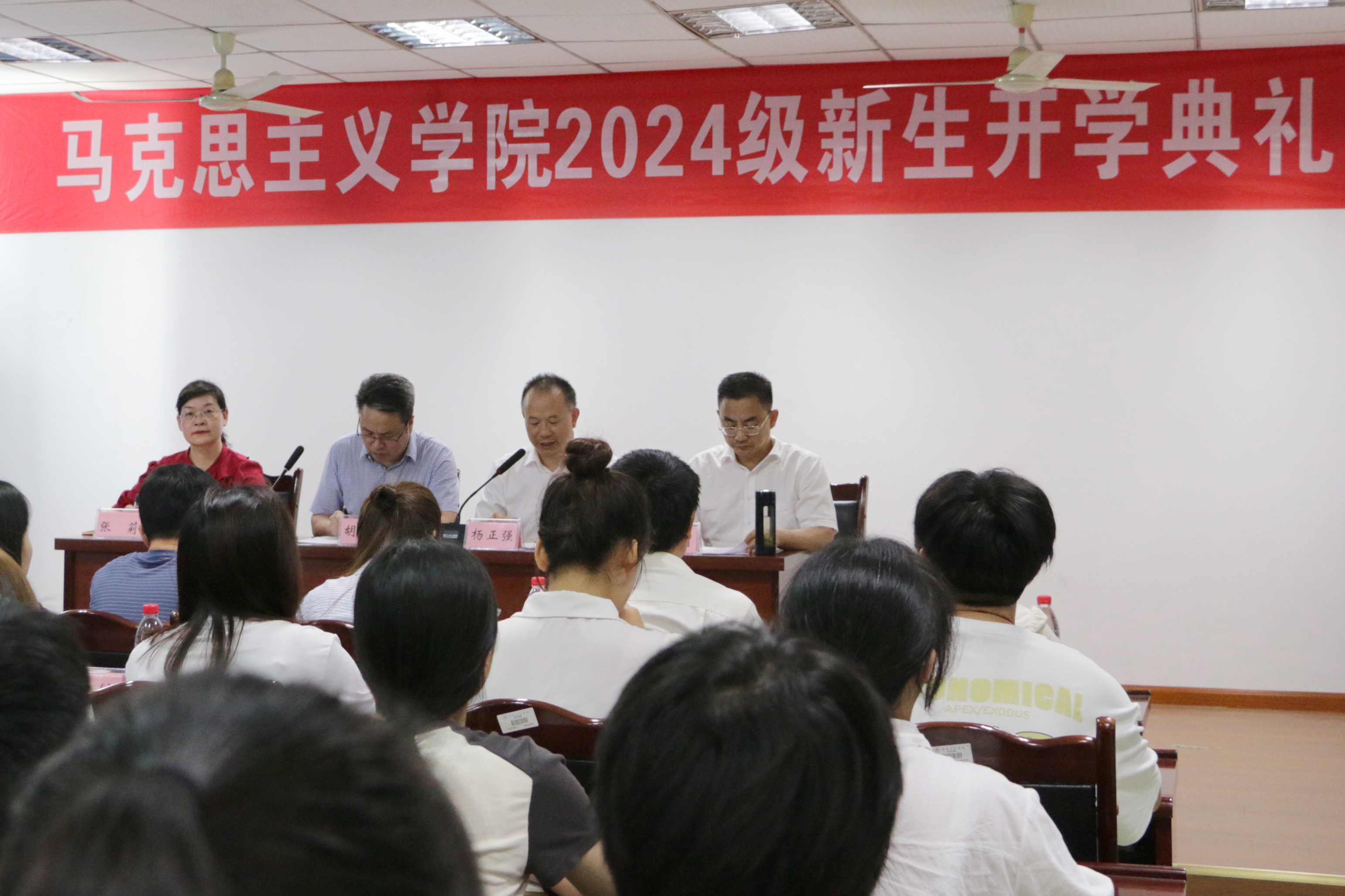 9月9日下午,九游会j92024级新生开学典礼在知津楼C205会议室举行,学院全体领导班子成员、科级干部、各教研室主任、教师代表、辅导员、在校高年级员工代表、2024级全体新生参加了开学典礼。j9九游会党委书记杨正强主持典礼。