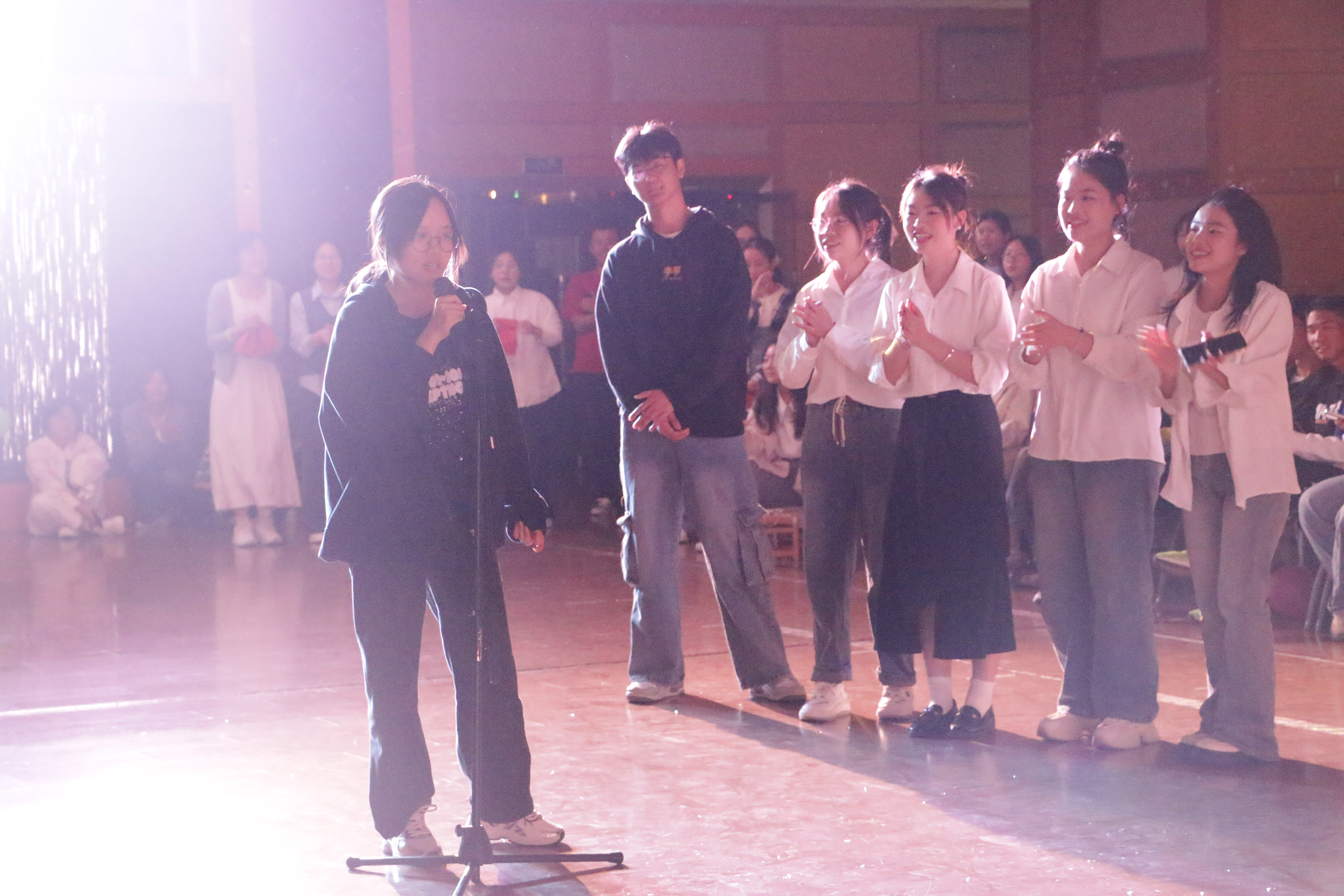 舞会由一支充满活力与朝气的交谊舞开始,优雅的舞步搭配婉转的音乐,将此次活动拉开帷幕。歌舞表演、吉他弹唱、乐器表演精彩纷呈。活动期间,穿插了抢板凳、自由舞蹈、抢麦、数字抱团等趣味游戏,气氛活跃愉快,增进了师生、同学之间的情谊。