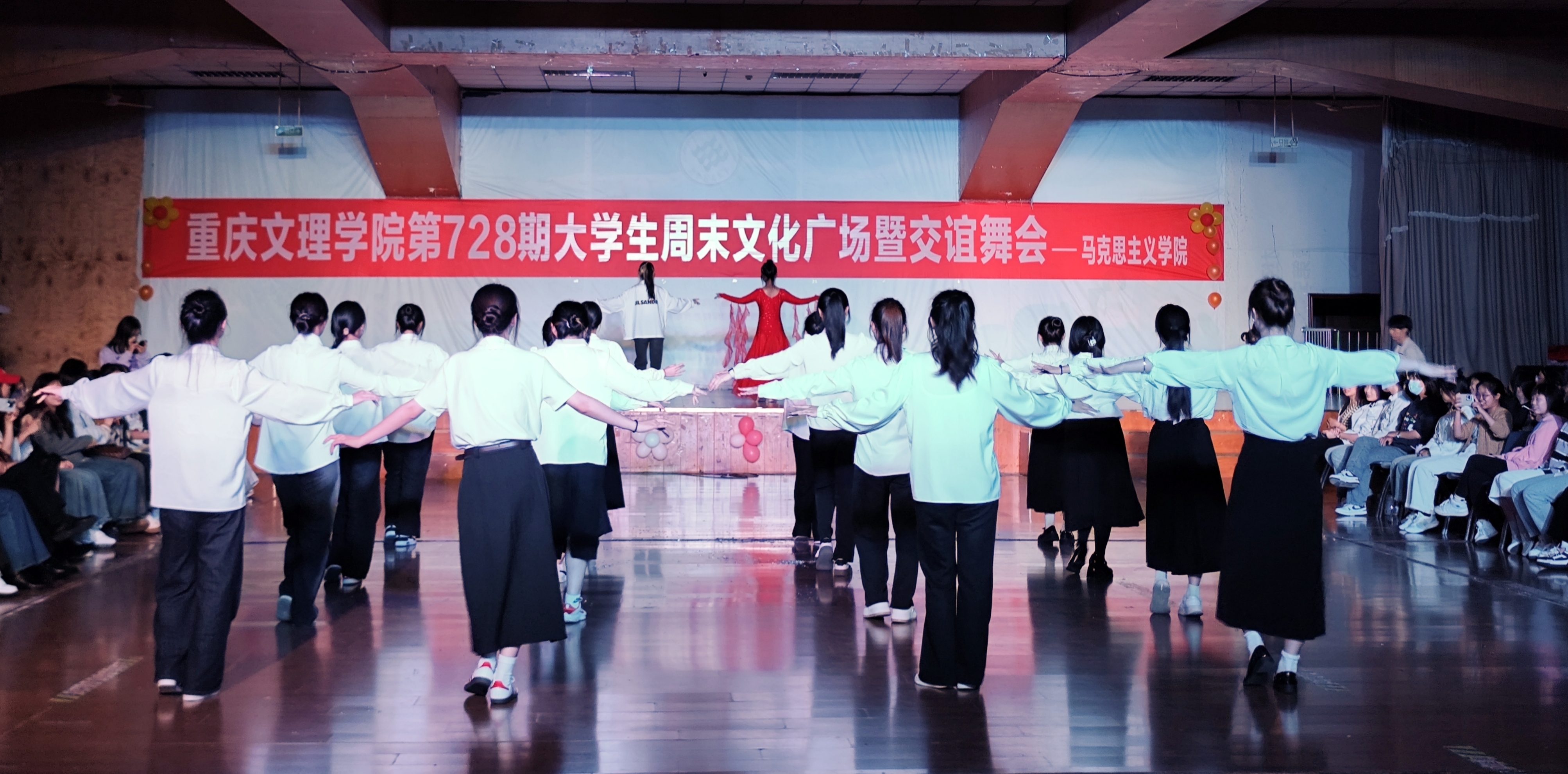 为增进员工友谊、提升社交技能、丰富老员工周末文化、促进身心健康,2024年10月27日晚,由j9九游会承办的学校第728期老员工周末文化广场暨交谊舞会在学校活动中心三楼成功举行。委书记杨正强、教师黄慧敏、辅导员伍沈平、各二级学院员工代表参加活动。