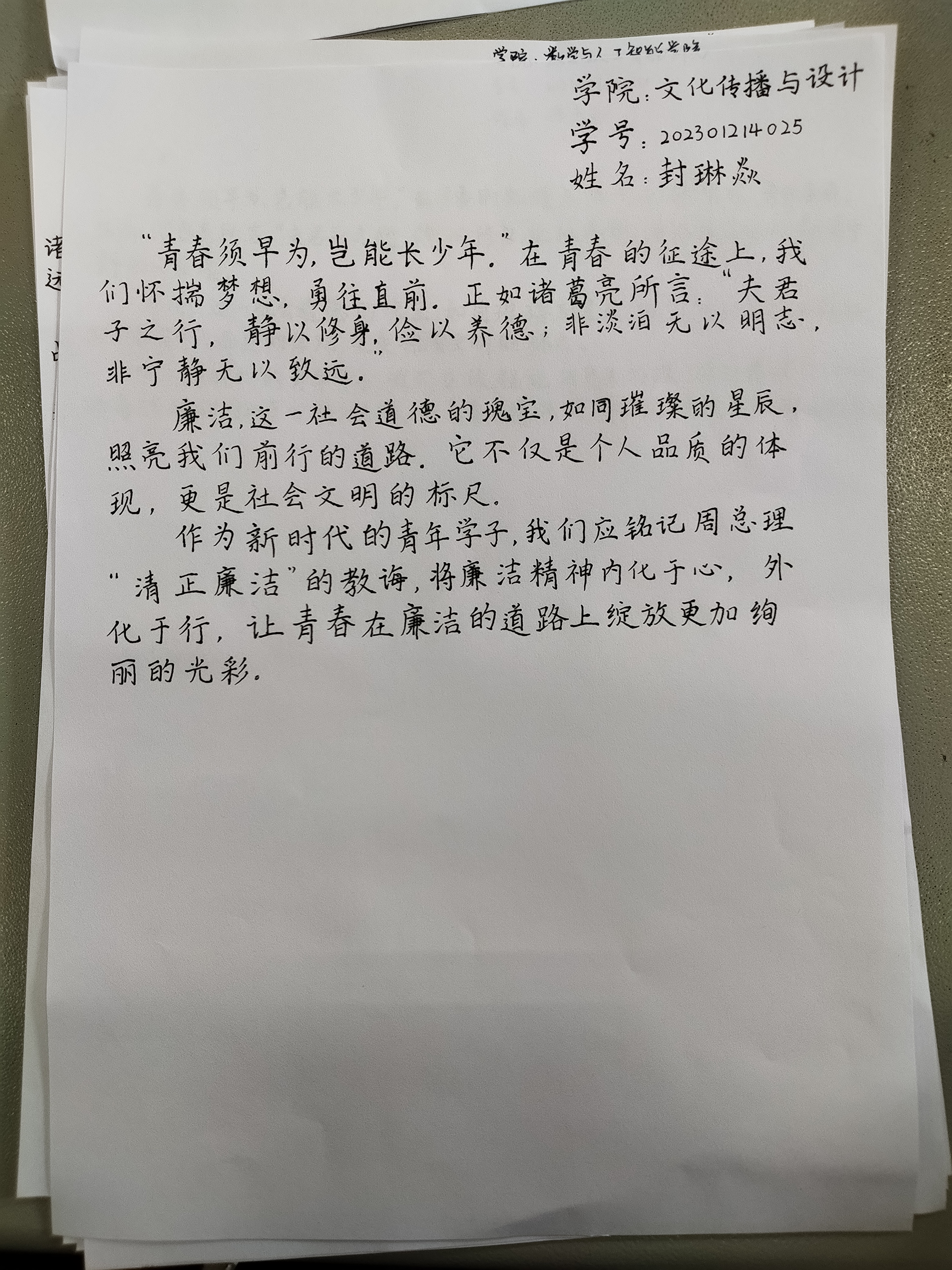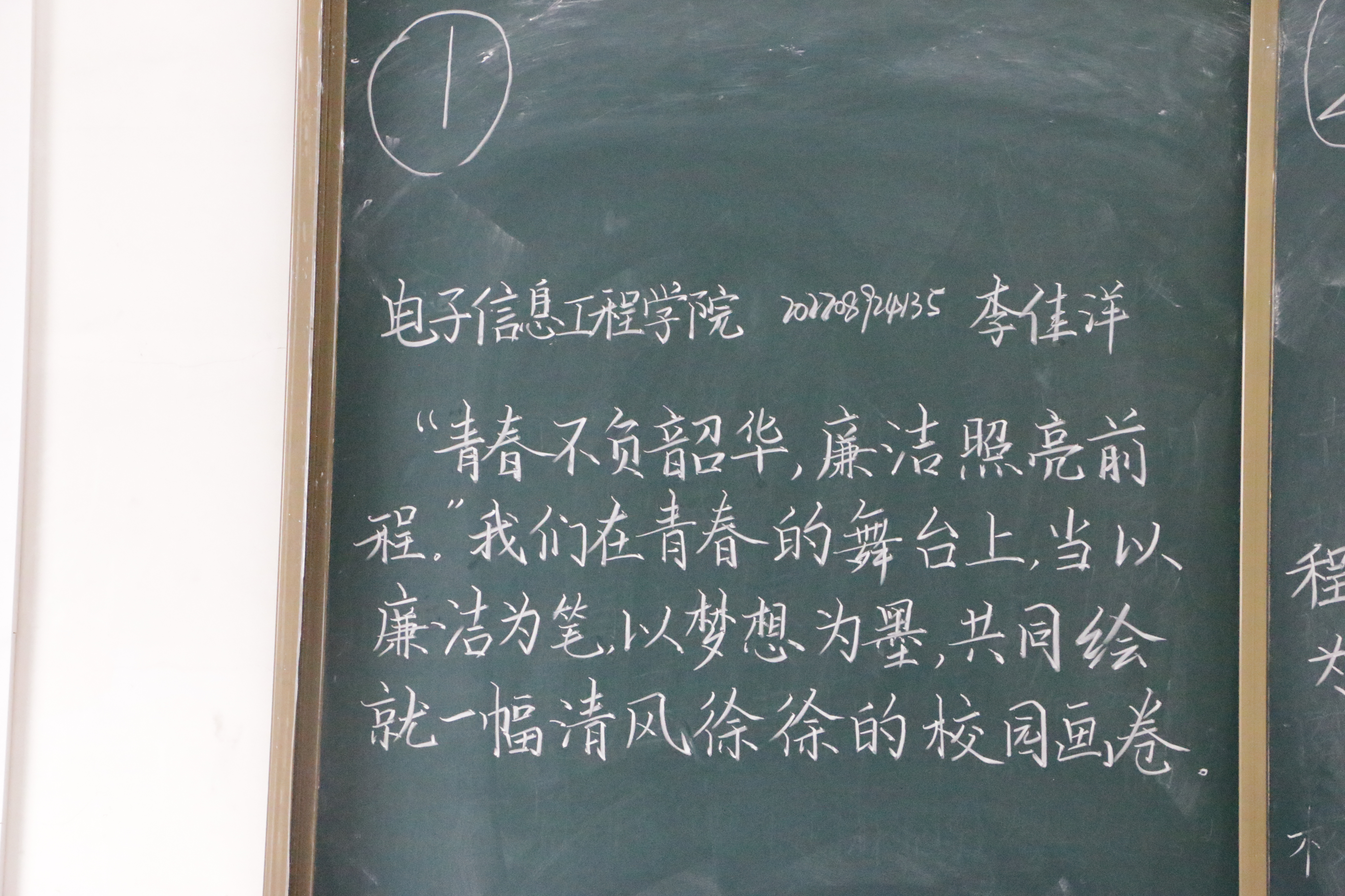 比赛现场气氛热烈,选手们围绕廉洁主题,全神贯注地进行创作。一撇一捺彰显道德修养、笔墨风采。钢笔字刚劲流畅,似诉说爱国之志;毛笔字挥洒自如,展现汉字韵味与民族自豪;粉笔字规整大气,传达对廉洁文化的热爱。他们在书写中彰显汉字之美,更将爱国情怀、廉洁文化等融入其中。
