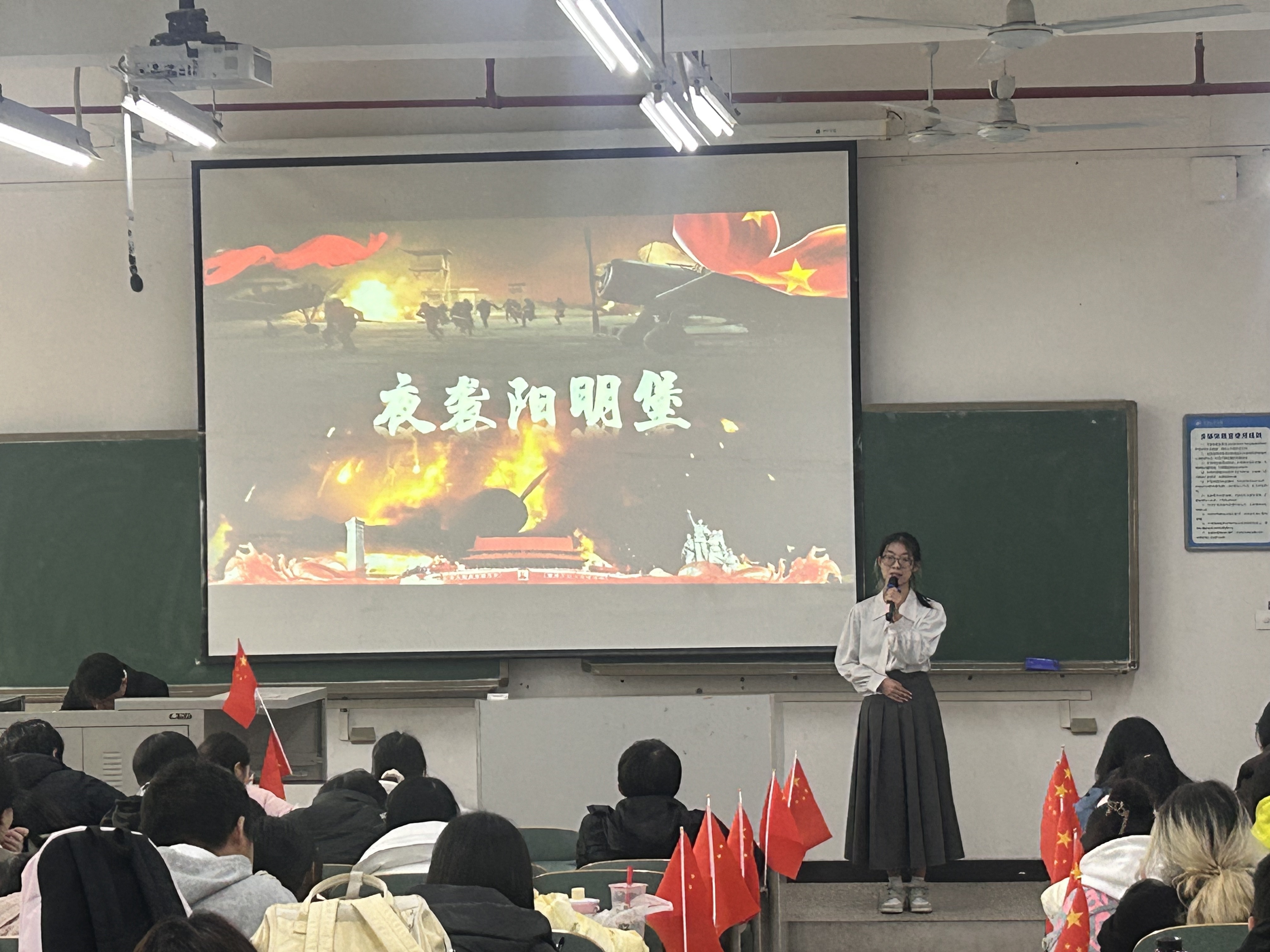 本次宣讲由宣讲团成员王丹主持,成员李红晴、刘佳、刘鉴锋、祖克会、赵芮、周心琳、张馨月先后上台为同学们讲述了《五四运动》《樊锦诗:我心归处是敦煌》《大山的女儿—黄文秀》等党史故事。宣讲团成员以用感人的事迹、真挚的情感、铿锵的话语展现了中国共产党人的崇高品格和时代楷模的优良风范,引发了同学们的强烈共鸣。