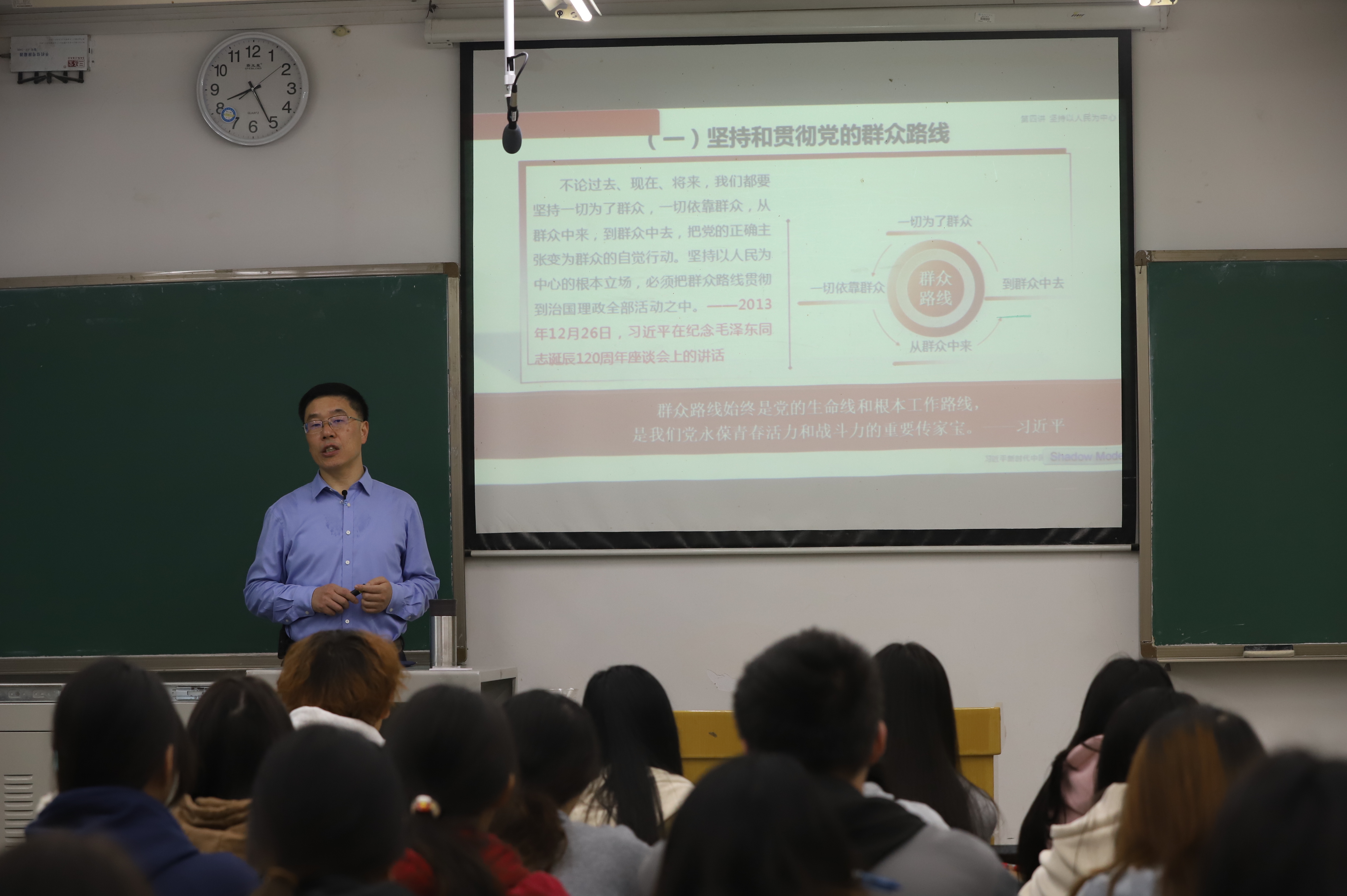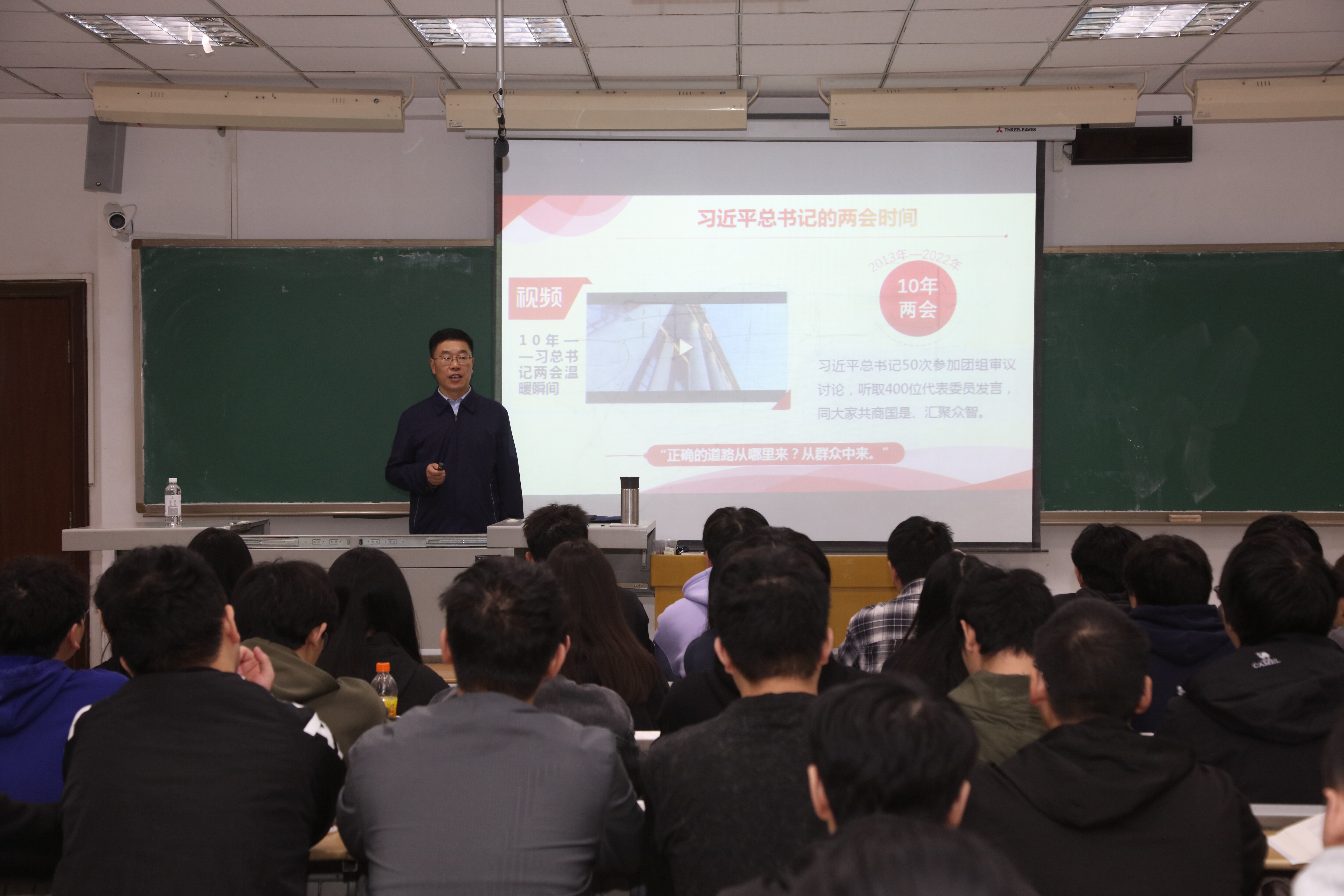 11月5日、11月12日,j9九游会党委书记蔡家林分别为2022级数据科学专业2班、2022级物流工程专业1班和2班员工讲授题为“全面落实以人民为中心的发展思想”的思政课。蔡家林在讲授中,视野开阔、旁征博引、循循善诱,并运用丰富的实例,尤其充分结合学校践行以人民为中心的30余项为师生办实事清单,详细讲述了“坚持和贯彻党的群众路线”“把为人民造福的事情真正办好办实”“推动全体人民共同富裕取得更为明显的实质性进展”等内容,并带领同学们讨论并解答了“共同富裕是什么”“为什么要共同富裕”“怎么实现共同富裕”等问题。激励同学们要坚定理想信念,努力拼搏进取,着力提升为民服务的本领,全面践行以人民为中心的发展思想。