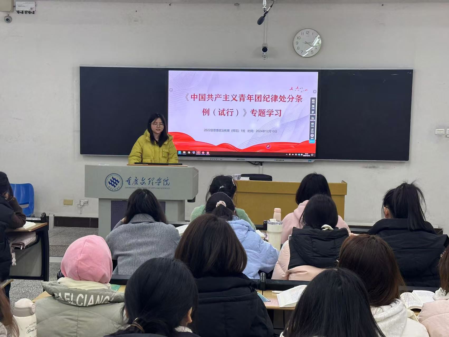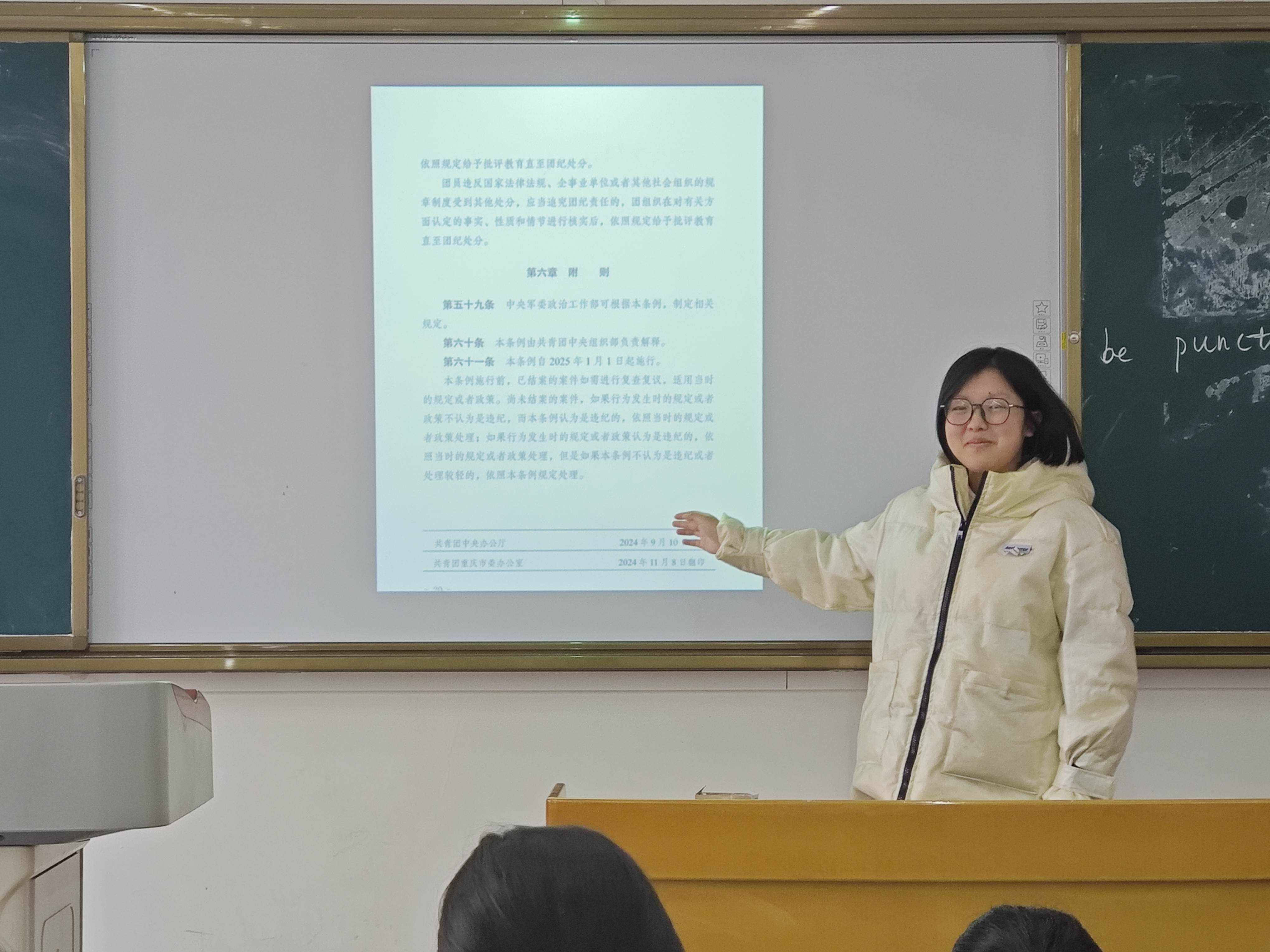 为强化青年团员纪律意识,提升团组织的凝聚力和战斗力,近日,学院积极组织2022、2023、2024级思想政治教育(师范)专业各班深入学习《中国共产主义青年团纪律处分条例》。