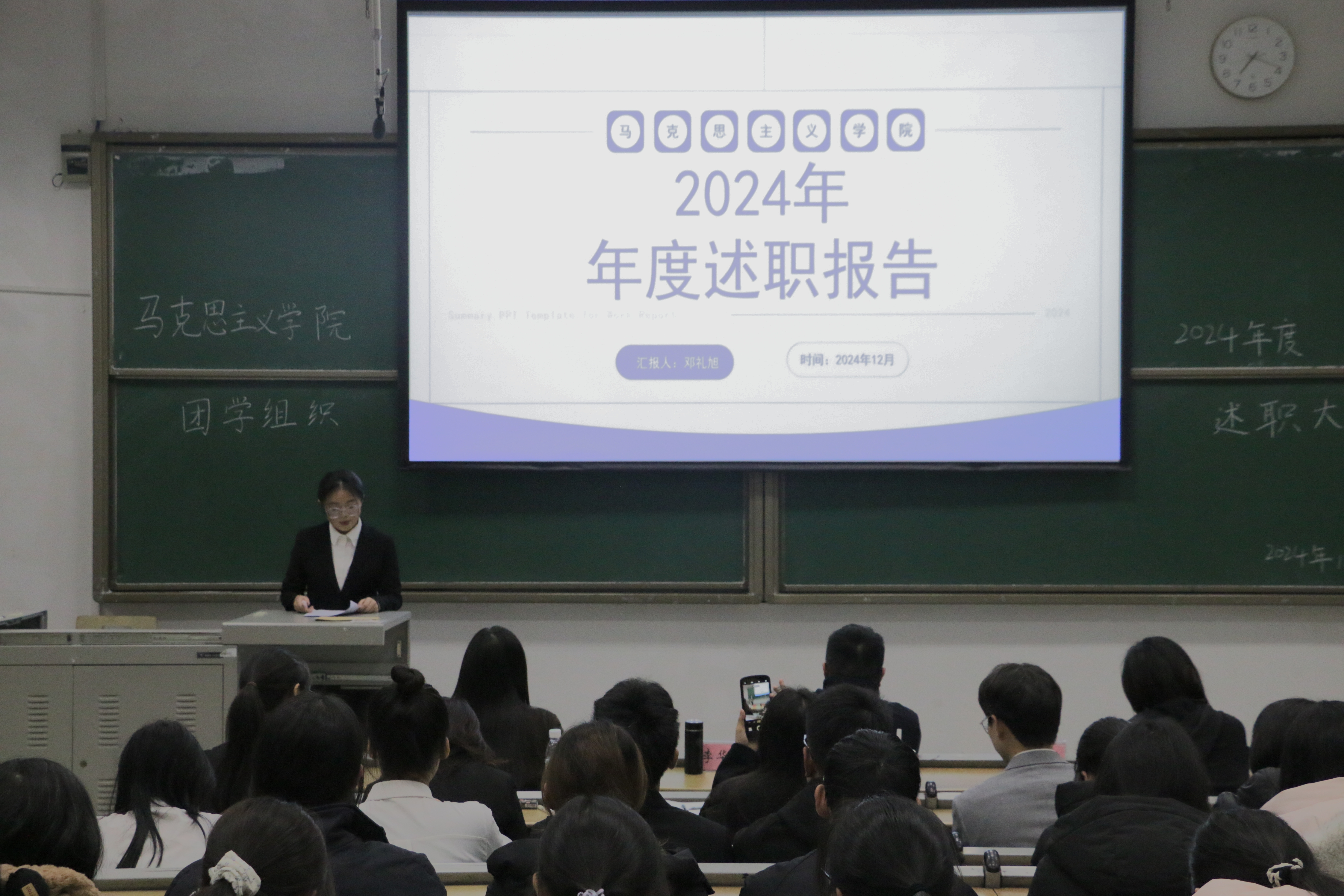 2024年12月22日晚,公司团学组织2024-2025学年第一学期员工干部述职大会在知津楼红河七阶顺利举行。j9九游会团委书记李华夏,j9九游会教师伍沈平,j9九游会教师黄慧敏及全体员工干部、干事共70余人参加。