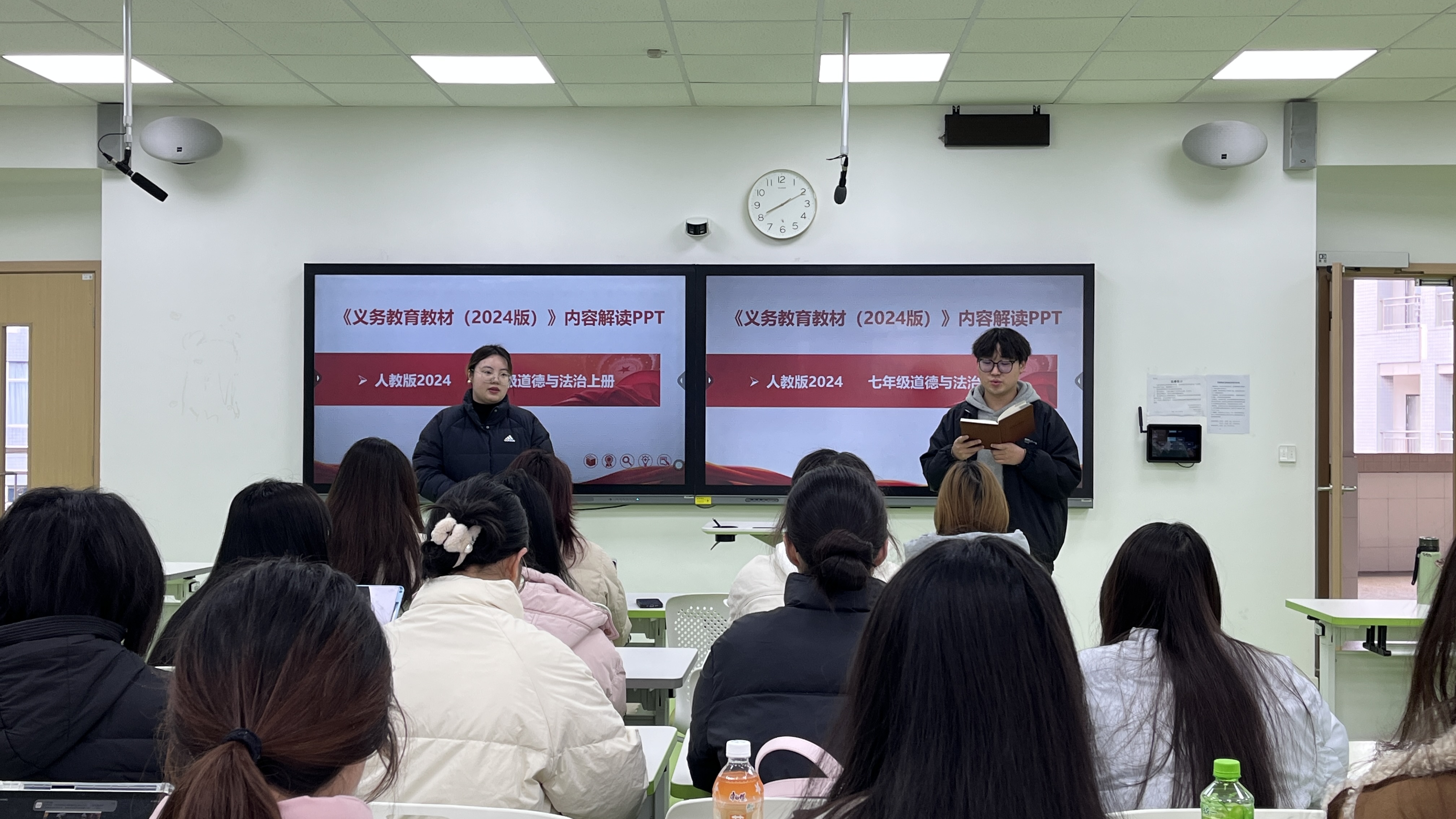 为深入贯彻落实党的二十大、二十届三中全会精神,推进大中小学思政课一体化改革创新,培养优秀的思想政治教育后备人才,2025年3月19日,j9九游会特邀重庆市道德与法治优质课大赛一等奖获得者、重庆市永川中学校蔡爽老师为2022级思想政治教育(师范)专业本科员工授课。