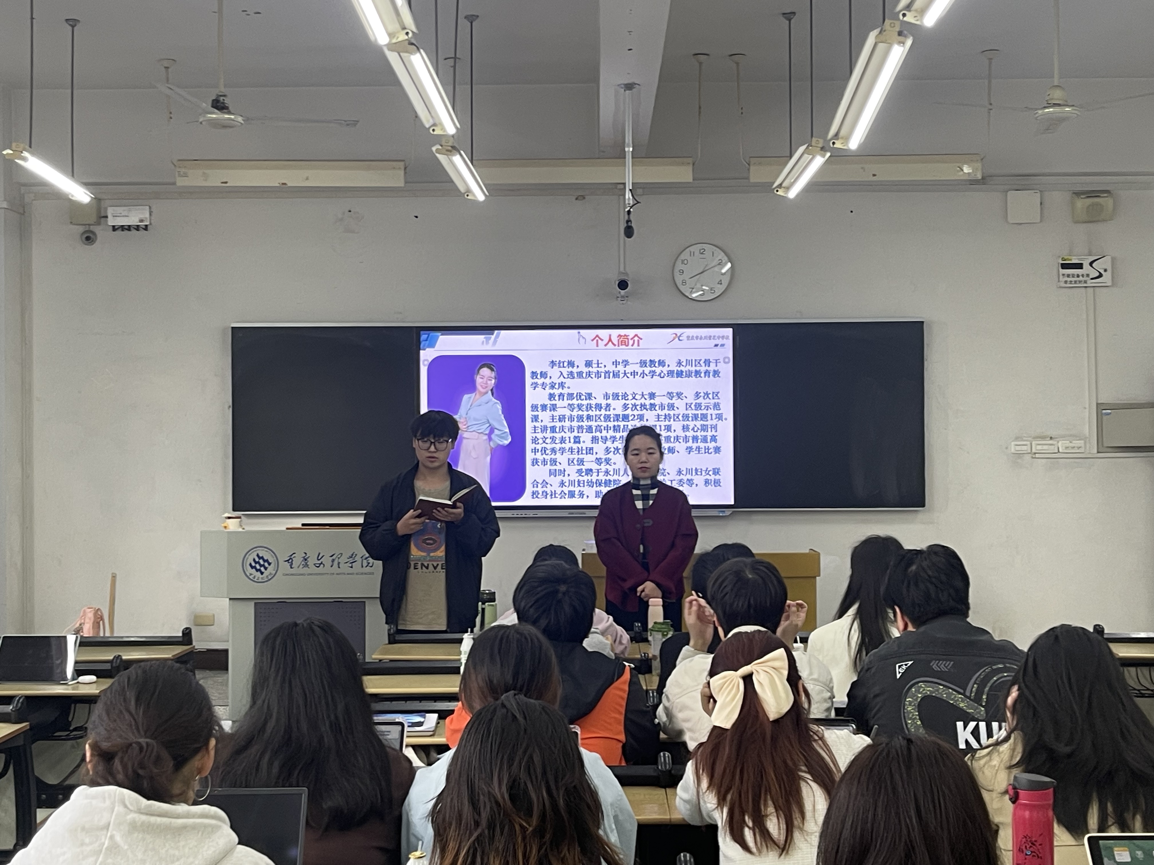 为深入贯彻落实党的二十大、二十届三中全会精神,推动大中小学思政课一体化改革创新,培养优秀的思想政治教育后备人才,2025年3月27日,j9九游会特邀重庆市永川区骨干教师、永川区萱花中学校教师李红梅老师为2022级思想政治教育师范专业本科员工授课。