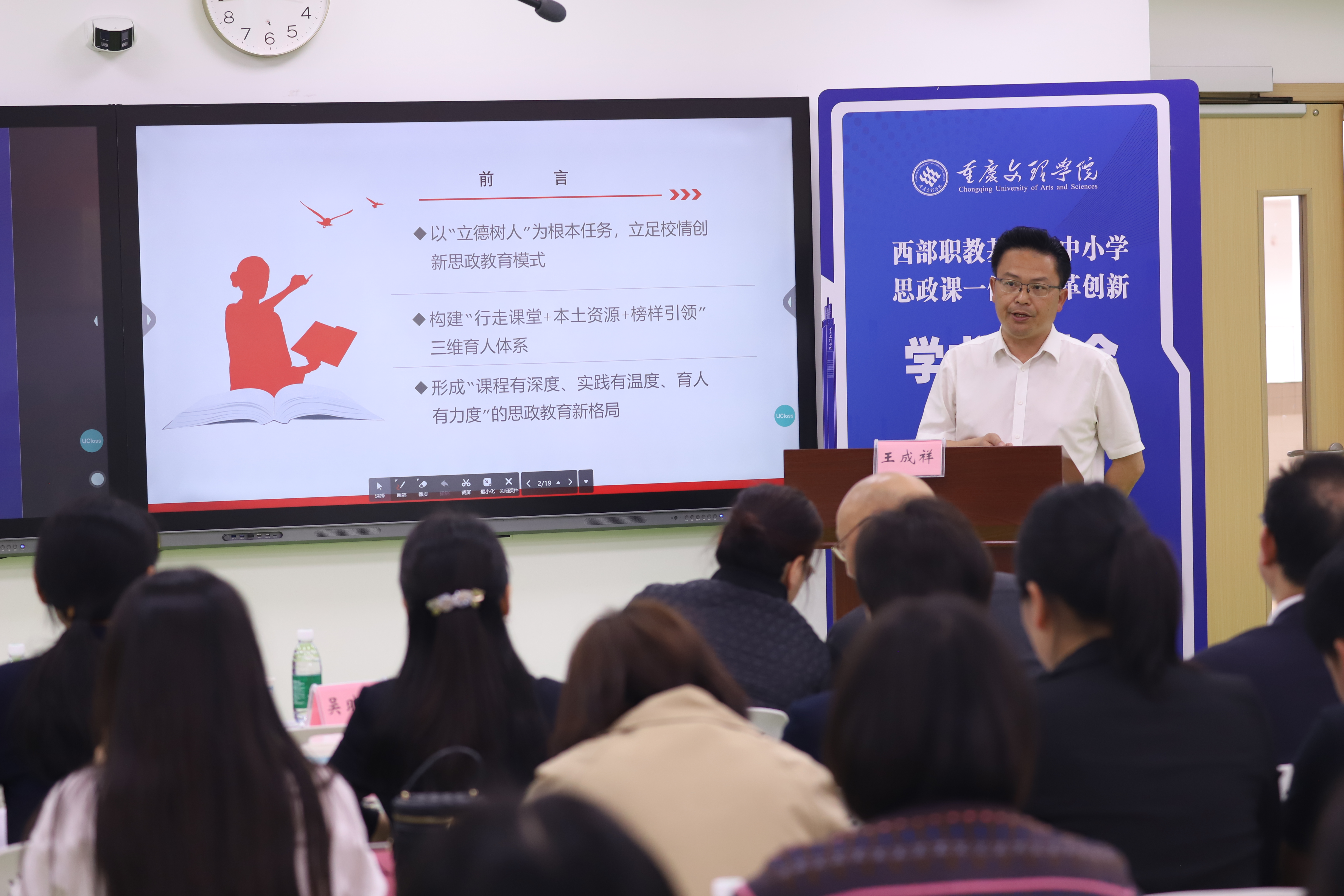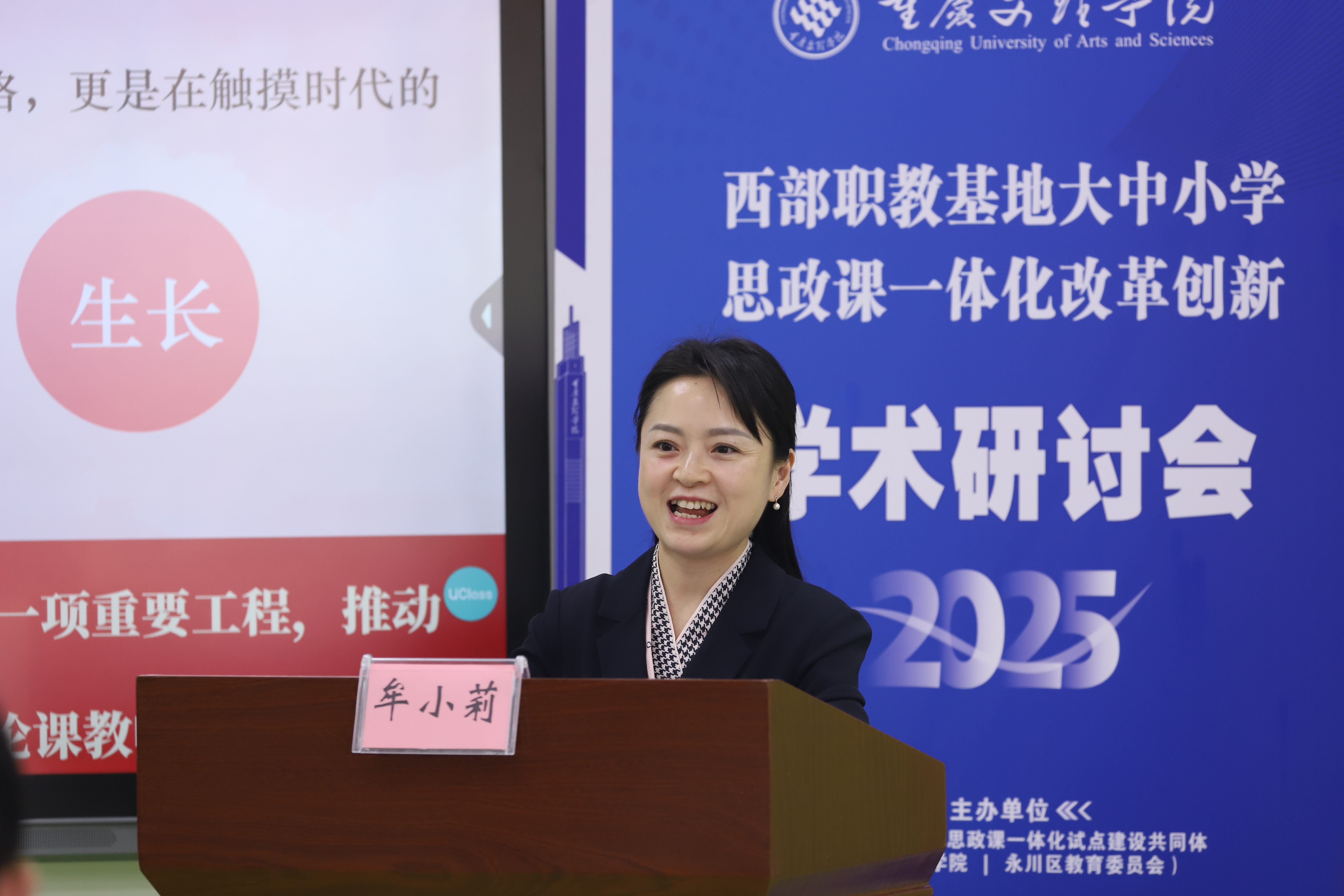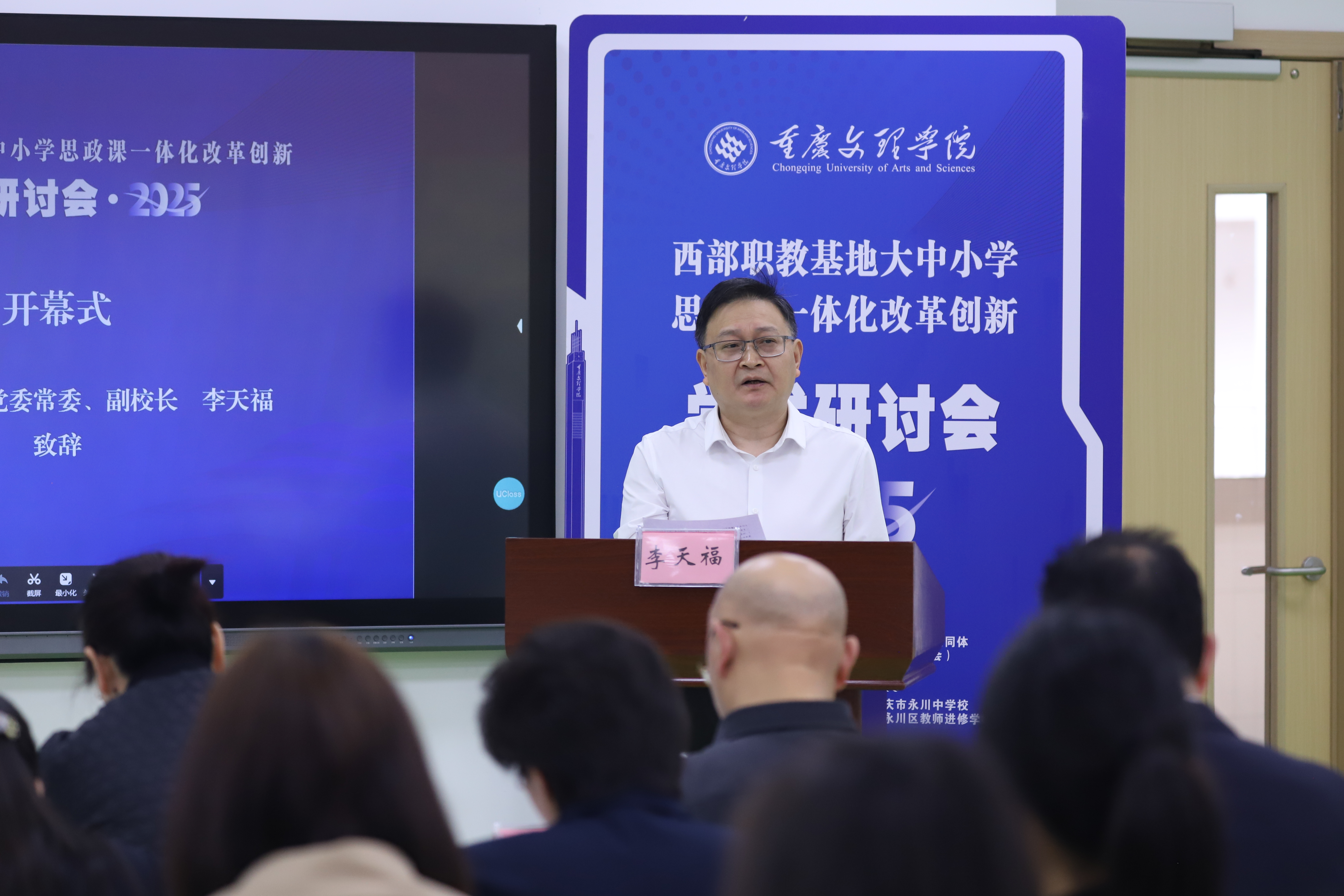 为深入学习贯彻党的二十届三中全会精神和习近平总书记对学校思政课建设作出的重要指示精神,4月16日,ag九游会、重庆市永川区教育委员会联合举办了西部职教基地大中小学思政课一体化改革创新学术研讨会。重庆文理j9九游会党委常委、副董事长李天福,大中小学德育一体化国家教材建设重点研究基地执行主任、北京师范大学教材研究院研究员、博士生导师吴晓云,重庆市永川区教育委员会副主任魏承文等出席会议。来自重庆市永川区教育委员会、ag九游会、重庆现代制造职业学院、重庆市渝北职业教育中心、重庆市永川区教师进修学校、重庆市永川中学校、永川区北山中学校、永川区文昌中学校、ag九游会附属中学校、永川区卧龙中学校、永川区昌南中学校、永川区兴龙湖中学、重庆市渝西卫生学校、永川区兴龙湖小学校、永川区三官殿小学校、永川区红星幼儿园等单位的相关领导、专家、一线教师和员工代表齐聚一堂,共同探讨大中小学思政课一体化改革创新,共谱西部职教基地思政课立德树人崭新篇章。