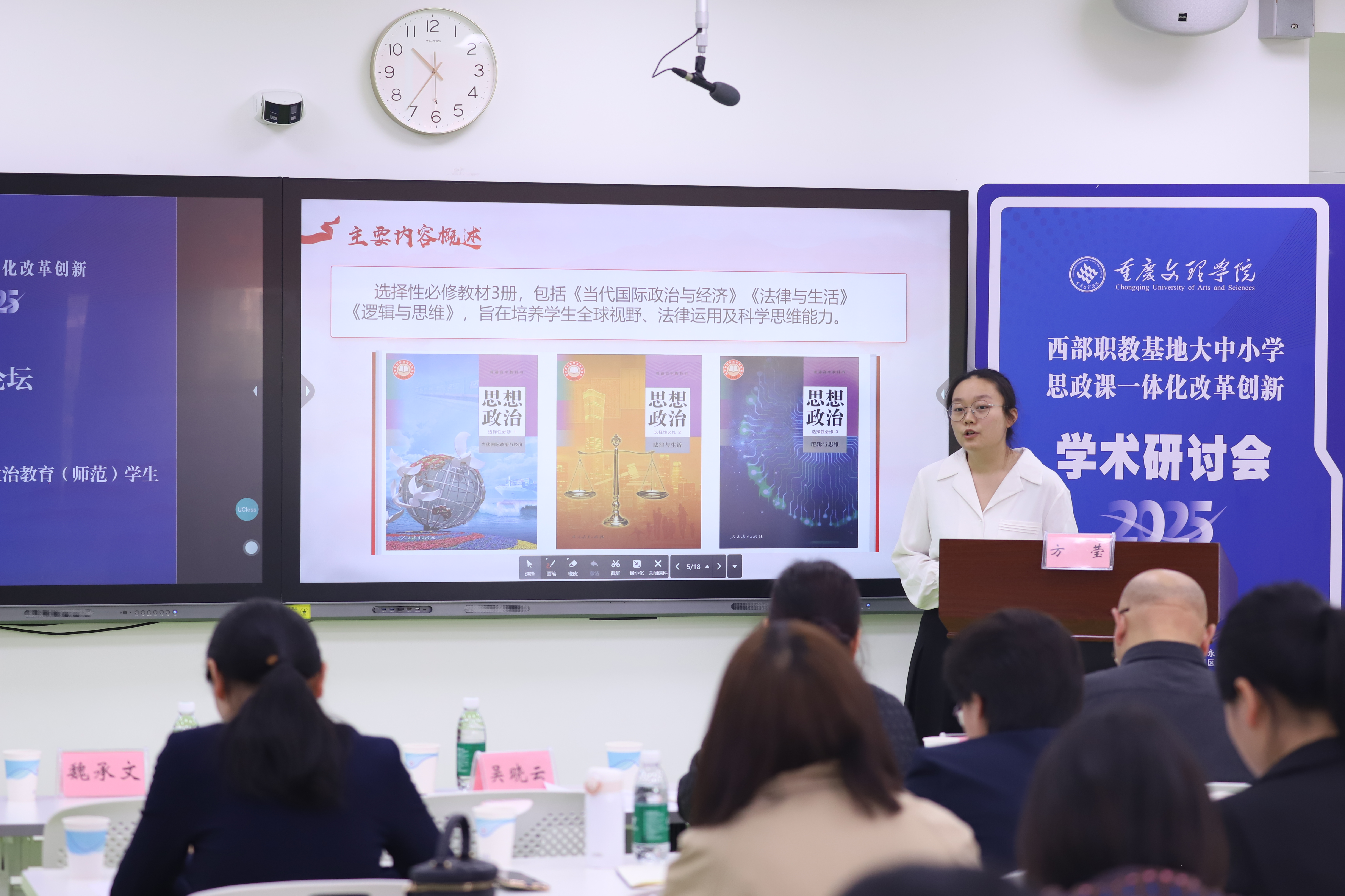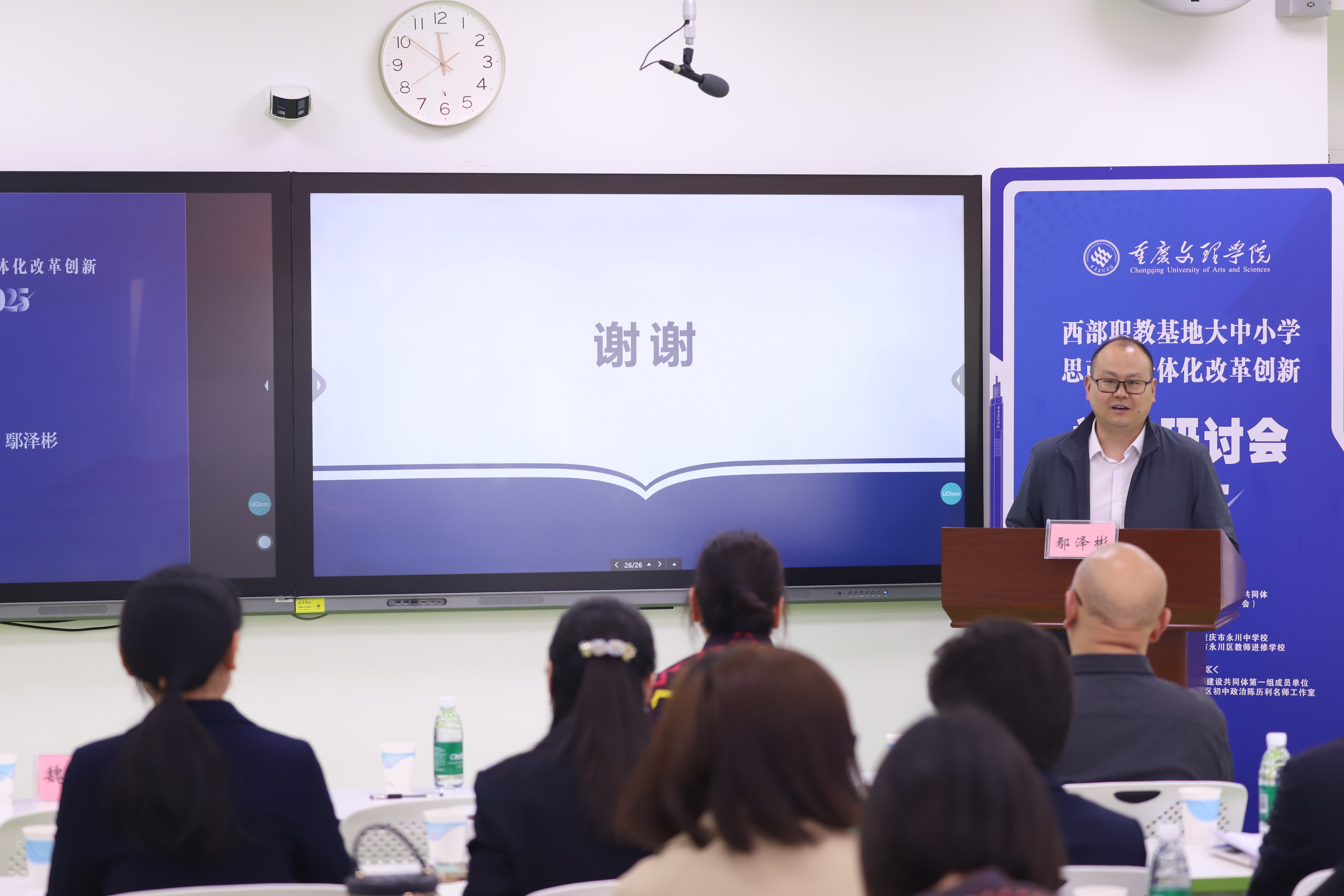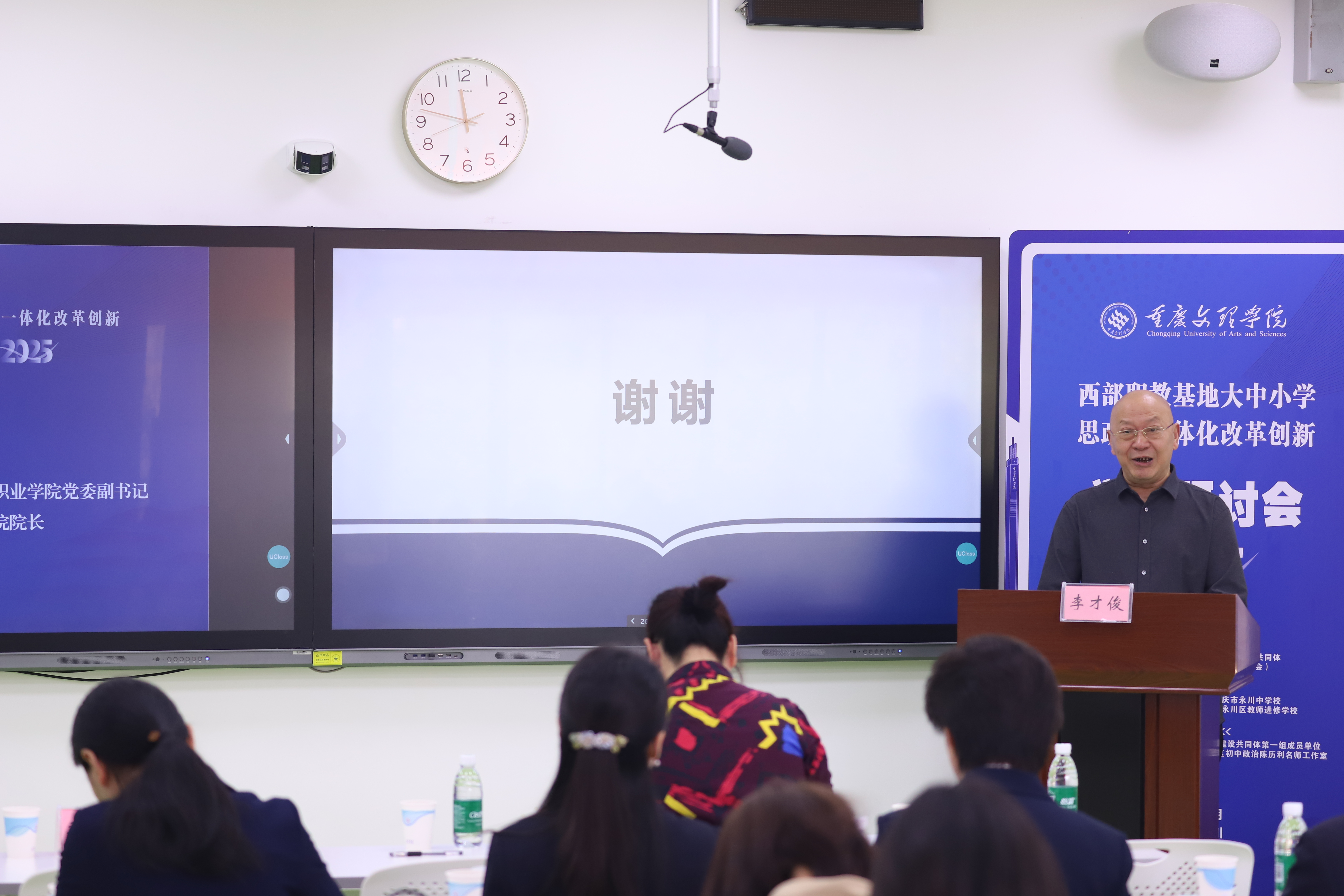 为深入学习贯彻党的二十届三中全会精神和习近平总书记对学校思政课建设作出的重要指示精神,4月16日,ag九游会、重庆市永川区教育委员会联合举办了西部职教基地大中小学思政课一体化改革创新学术研讨会。重庆文理j9九游会党委常委、副董事长李天福,大中小学德育一体化国家教材建设重点研究基地执行主任、北京师范大学教材研究院研究员、博士生导师吴晓云,重庆市永川区教育委员会副主任魏承文等出席会议。来自重庆市永川区教育委员会、ag九游会、重庆现代制造职业学院、重庆市渝北职业教育中心、重庆市永川区教师进修学校、重庆市永川中学校、永川区北山中学校、永川区文昌中学校、ag九游会附属中学校、永川区卧龙中学校、永川区昌南中学校、永川区兴龙湖中学、重庆市渝西卫生学校、永川区兴龙湖小学校、永川区三官殿小学校、永川区红星幼儿园等单位的相关领导、专家、一线教师和员工代表齐聚一堂,共同探讨大中小学思政课一体化改革创新,共谱西部职教基地思政课立德树人崭新篇章。