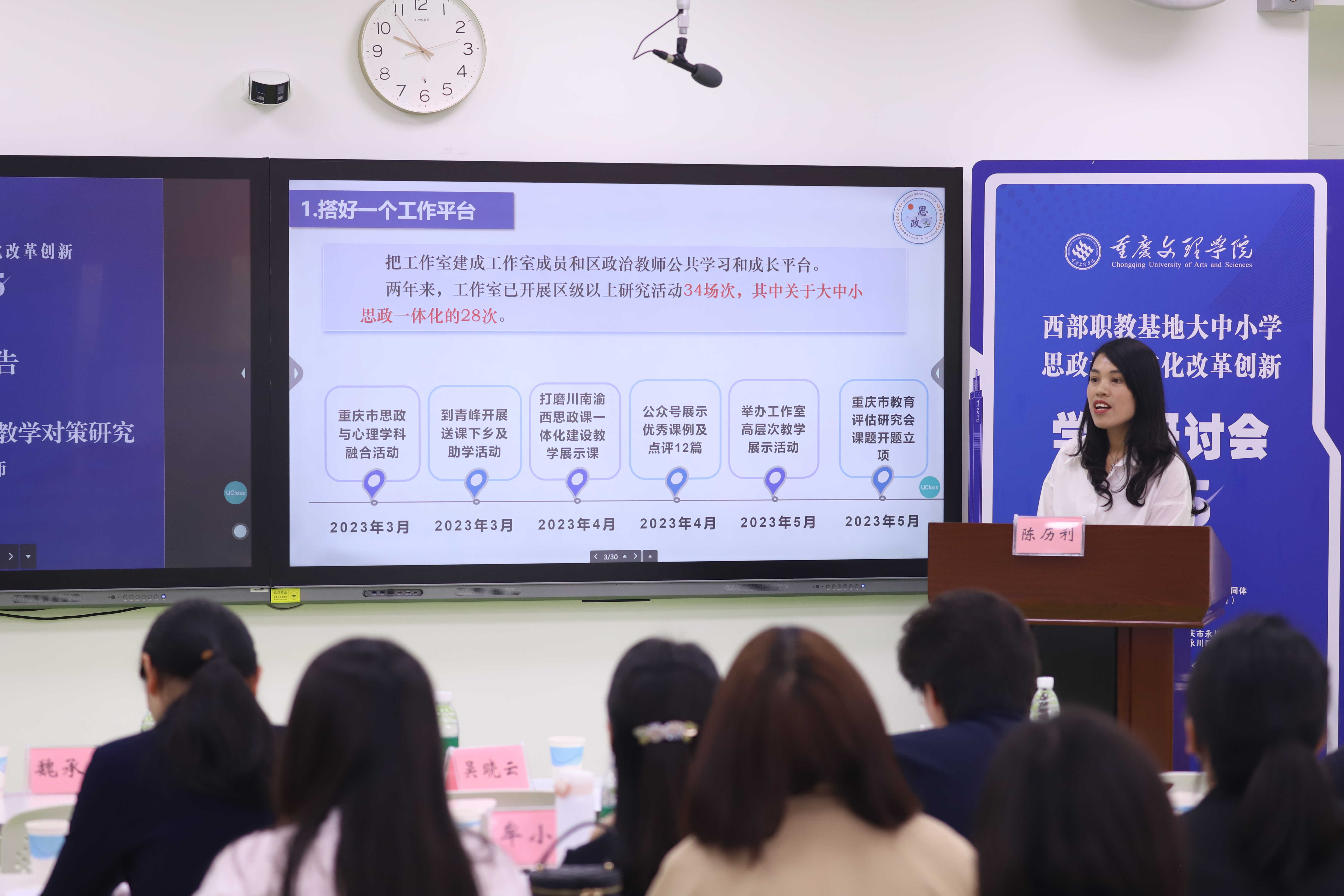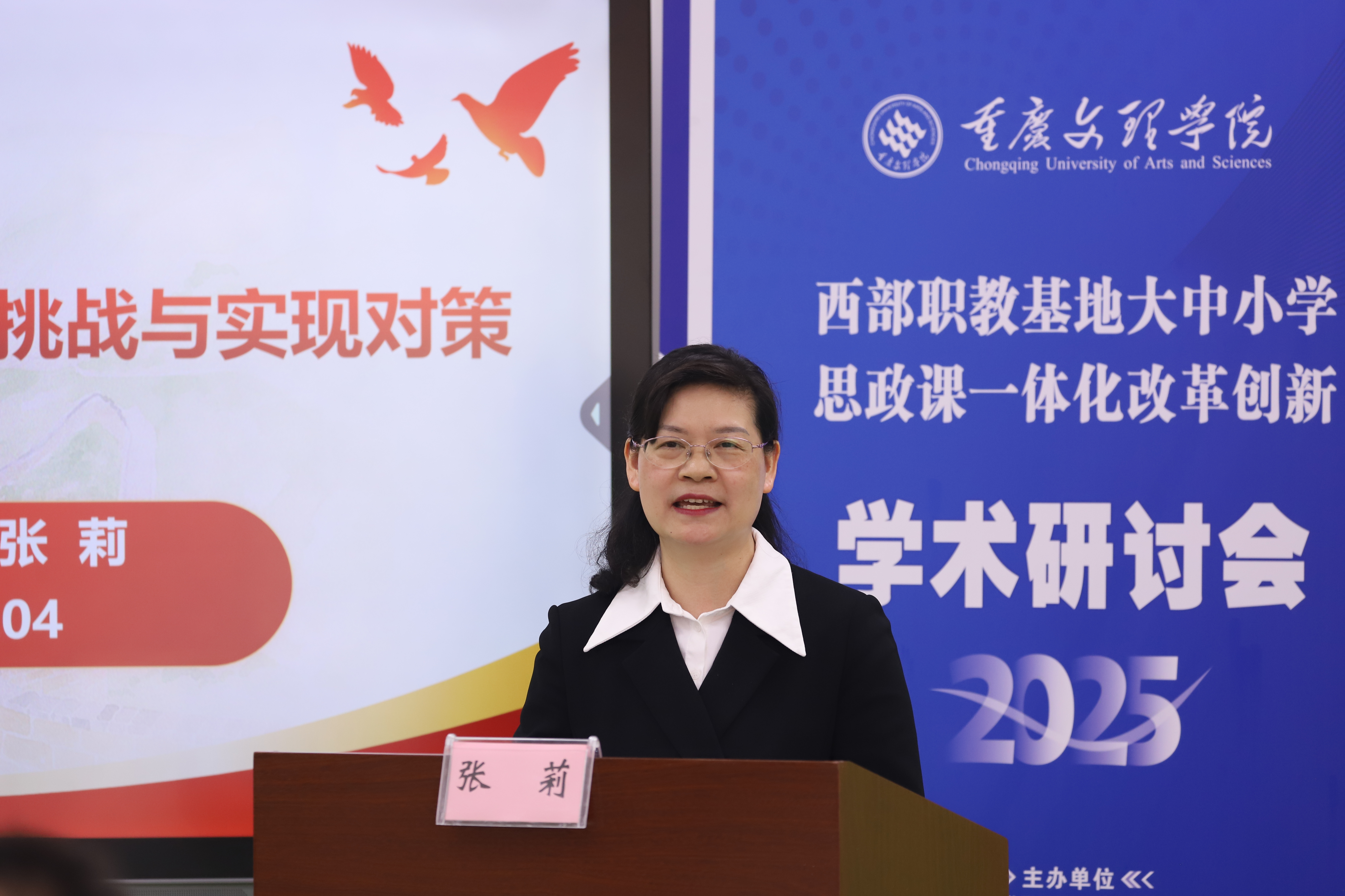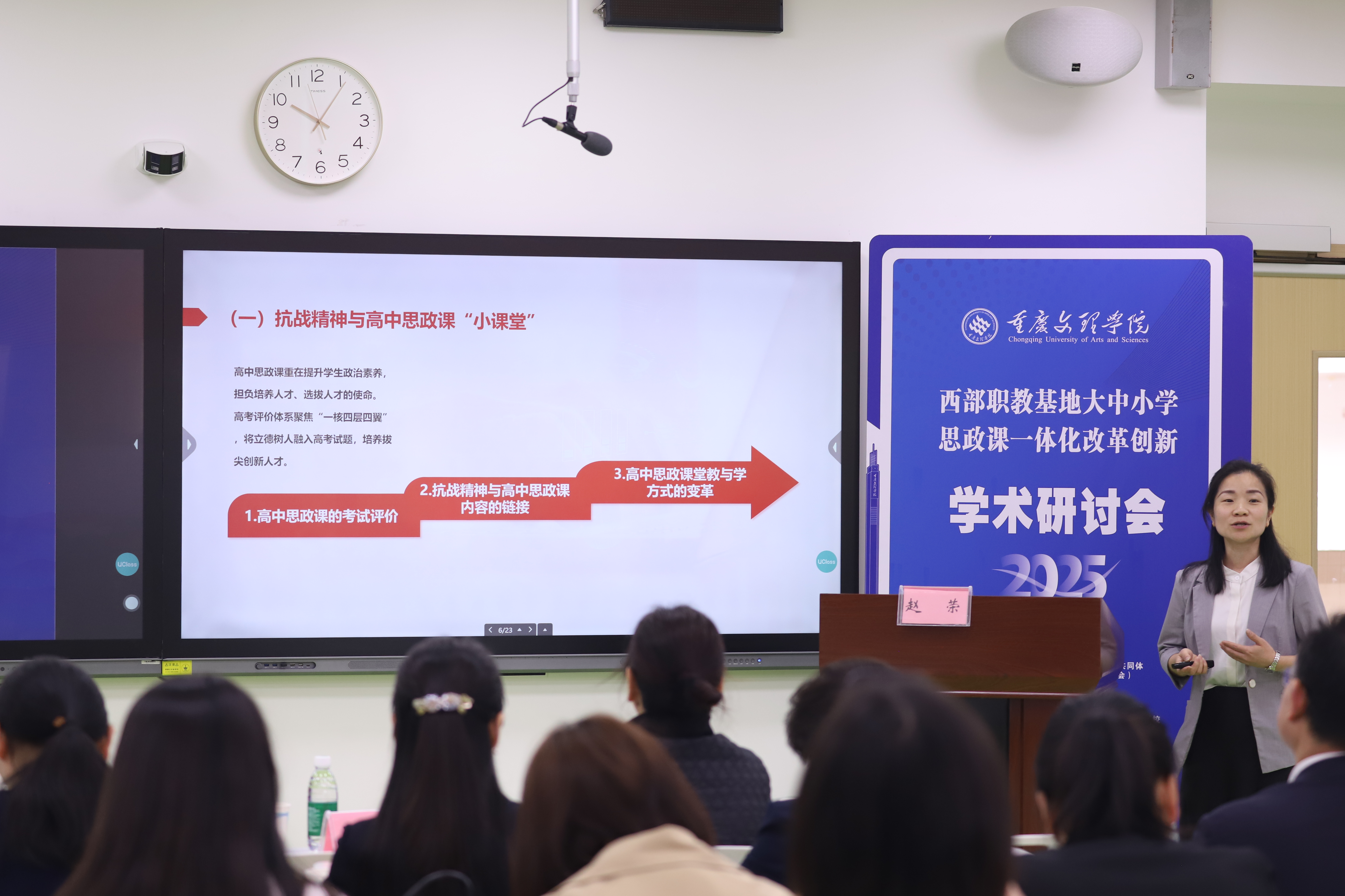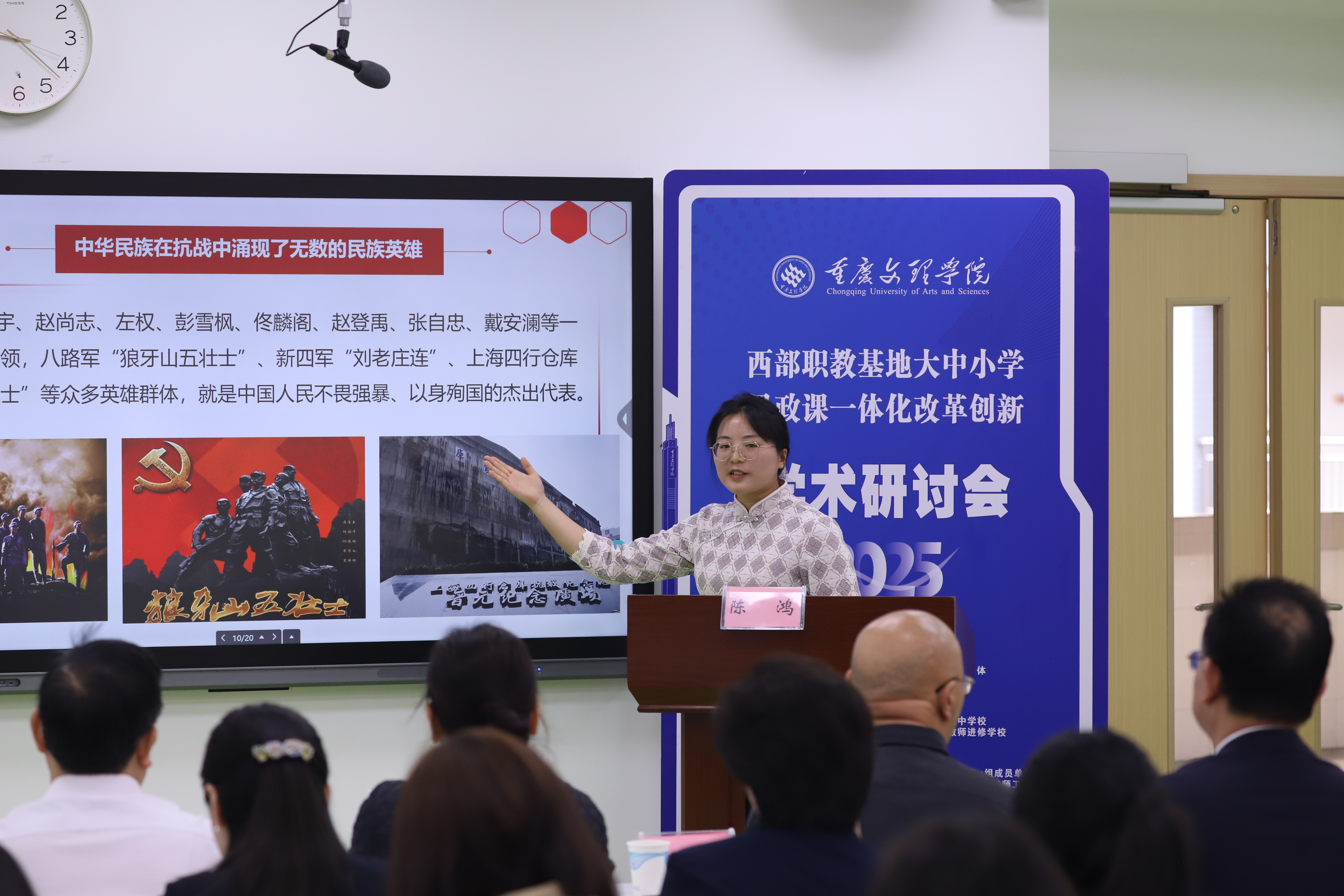 在学术报告环节,永川区教师进修学校教研员赵荣围绕《抗战精神融入中小学思政课一体化教学的实施策略》主题,提出强化教研、培训、赛事的一体化,守好思政小课堂;着眼校园活动、课程思政、技术赋能、拓展团队,延展学校全课堂;在真“行”中收获真“信”、在真“走”中践行真“学”,善用社会大课堂。ag九游会委副书记、经理张莉以《抗战场景思政课:独特优势、严峻挑战与实现对策》为题,探讨了抗战场景思政课对抗战精神入脑入心入行的独特优势、抗战场景思政课当前面临的严峻挑战和实现对策,提出增强教师场景重构能力、增强员工理实融通能力、构建校地协同联动机制、增强家长日常抗战精神教育、推进国家抗战文化公园建设等对策。重庆市渝北职业教育中心党委副书记、董事长余朝宽主持此阶段会议。