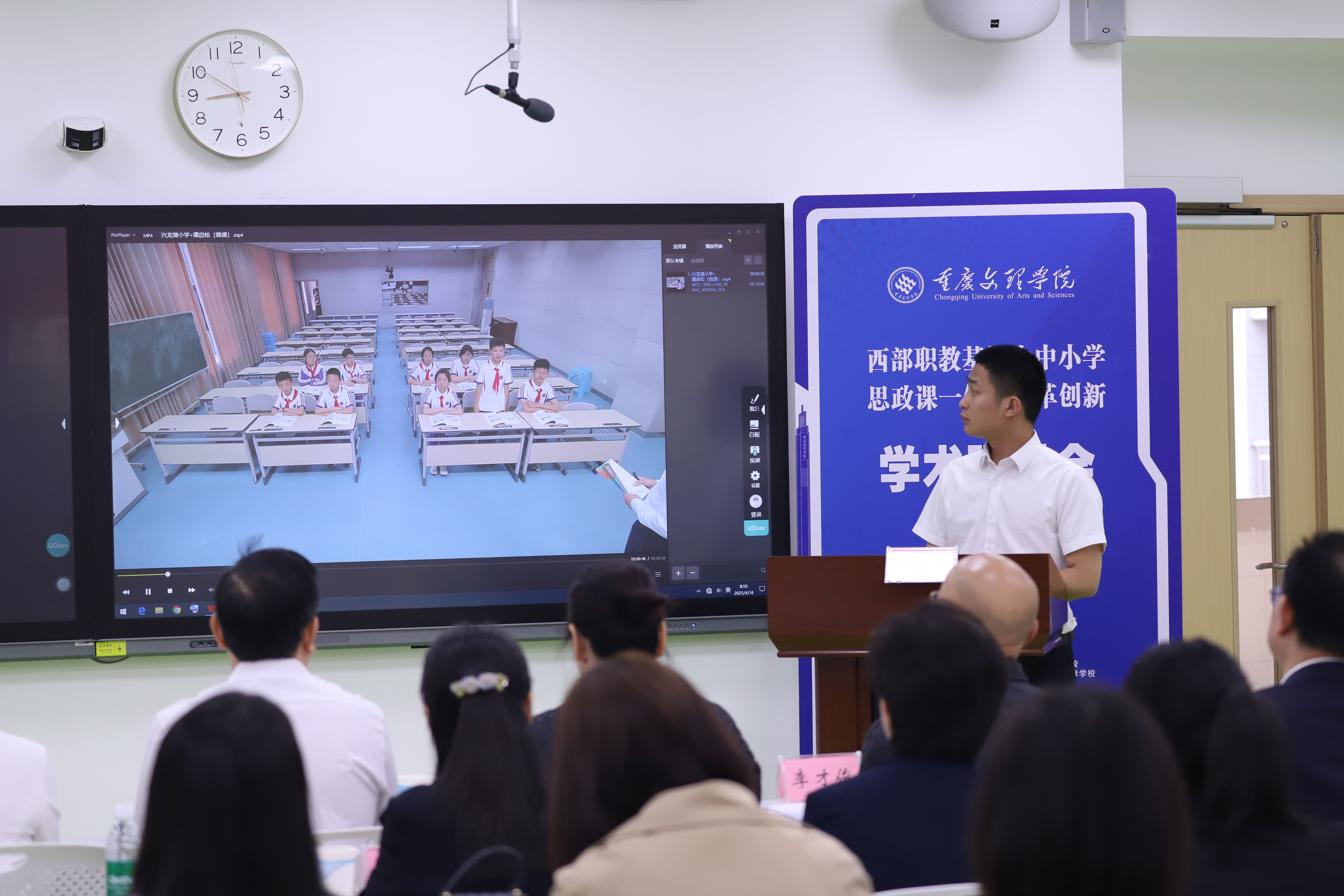 在同主题跨学段微课教学环节,兴龙湖小学校谭启松、文昌中学校李懋、永川中学校蔡浩、ag九游会陈鸿等4位老师,围绕抗战精神融入思政课,分别以《夺取抗日战争的胜利》《唱响“重庆不怕”雄音 高扬精神力量》《弘扬抗战精神》《弘扬抗战精神 厚植爱国情怀》为题进行跨学段微课教学,精彩呈现遵循不同学段员工认知特点、思想道德转化规律,讲出抗战精神思政课的风采。此阶段由重庆市永川区昌南中j9九游会党支部副书记周益主持。
