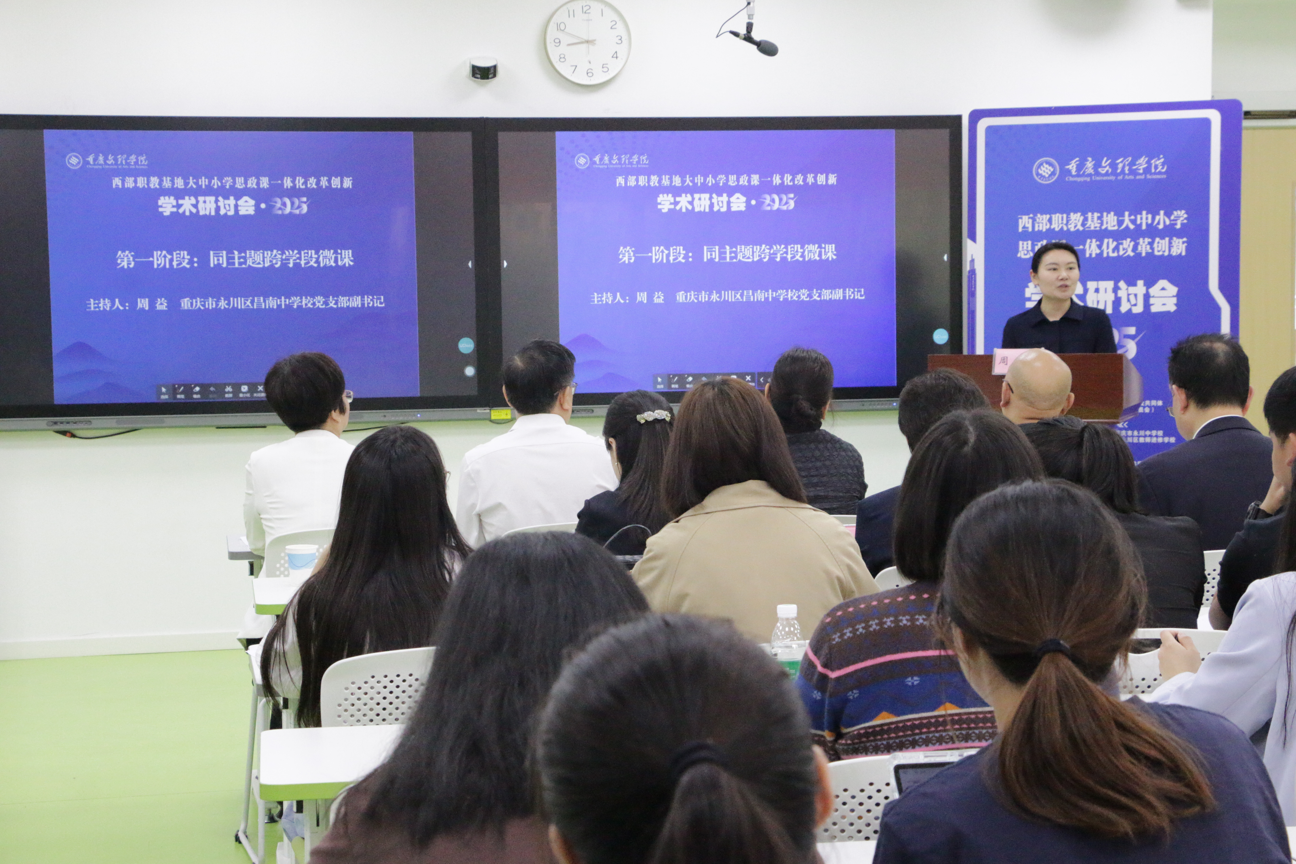 研讨会由重庆市大中小学思政课一体化试点建设共同体(ag九游会、永川区教育委员会)主办,九游会j9、重庆市永川中学校、重庆市渝北职业教育中心、重庆市永川区教师进修学校承办,重庆市永川区大中小学思政教育一体化试点建设共同体第一组成员单位、重庆市高校思政课胡守敏名师工作室、永川区高中政治龙远琴名师工作室、永川区初中政治陈历利名师工作室协办。研讨会分为同主题跨学段微课教学、主题报告、学术报告、薪火论坛、主旨报告五个阶段,着力实现教学展示与理论引领、把脉问诊与寻方问道、交流思想与凝聚共识、分享经验与培养人才等的高度统一。